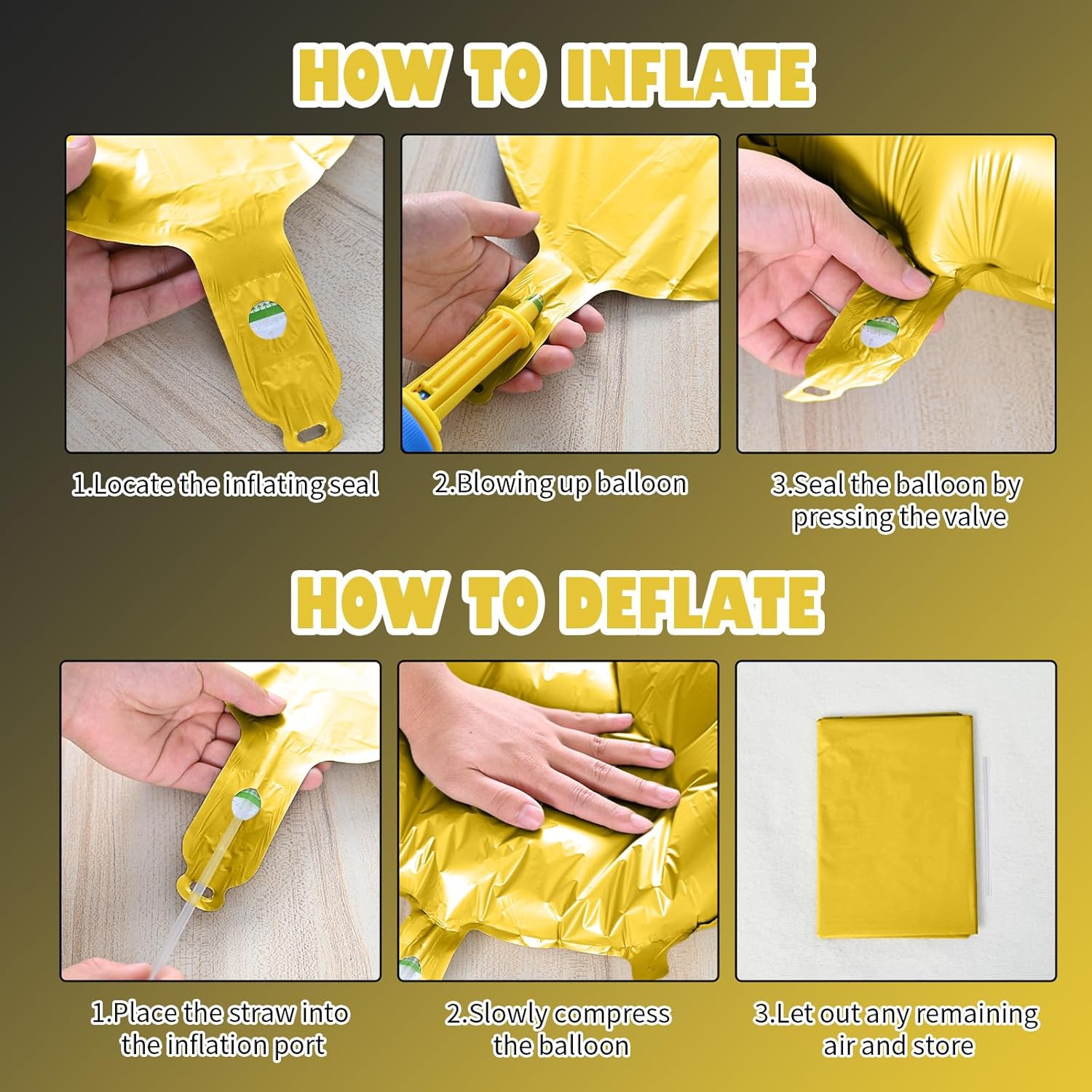 • Reusable Foil Balloons: The black gold star balloon set is completely reusable. Avoid excessive friction and sharp objects when using it. Use a straw to deflate and flatten it after event, and it will still be a shining decoration at the party next time