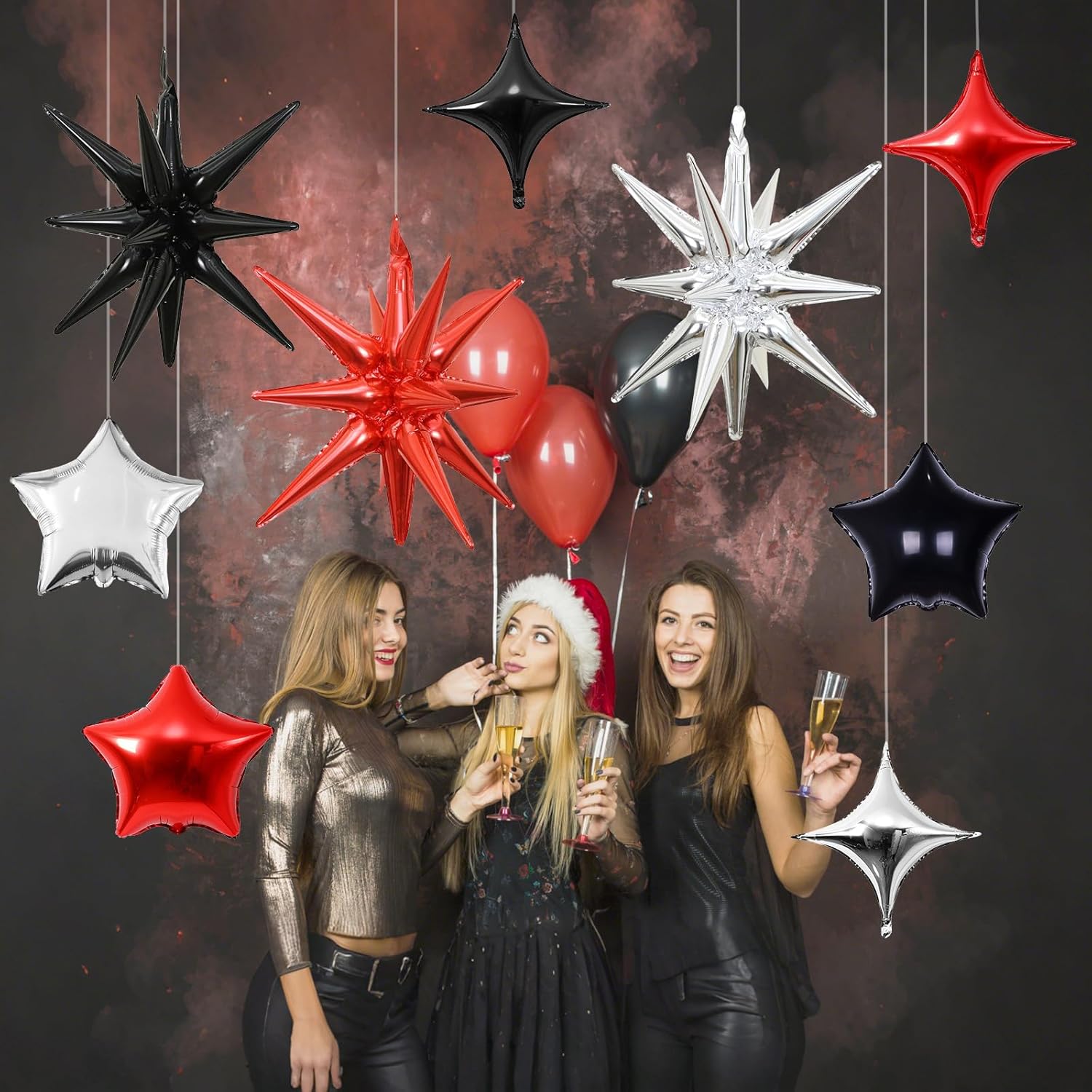• Widely used: The red black and silver star balloon set is very suitable for graduation parties, New Year, birthday parties, casino nights, movie nights, wedding and anniversaries. You can DIY these sparkle star decorations at your events