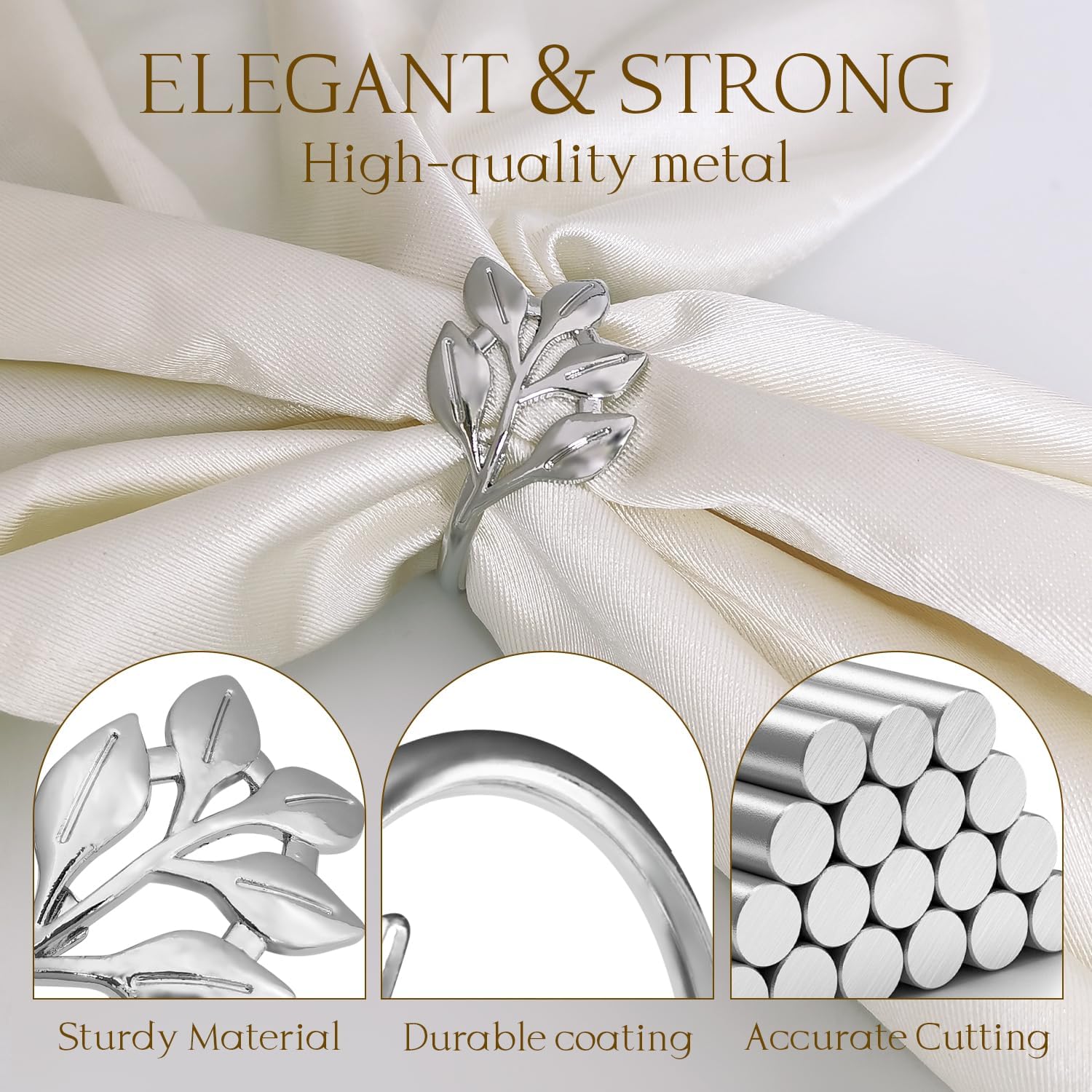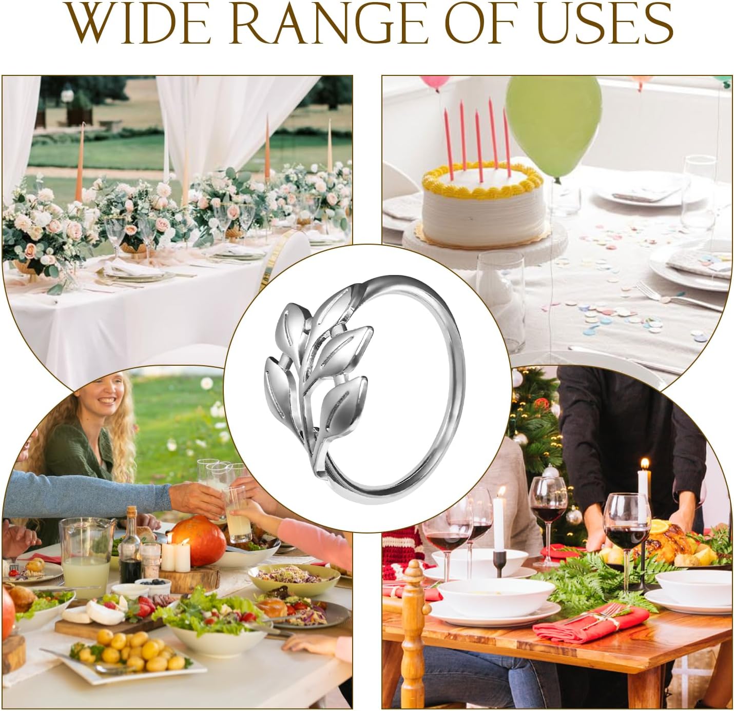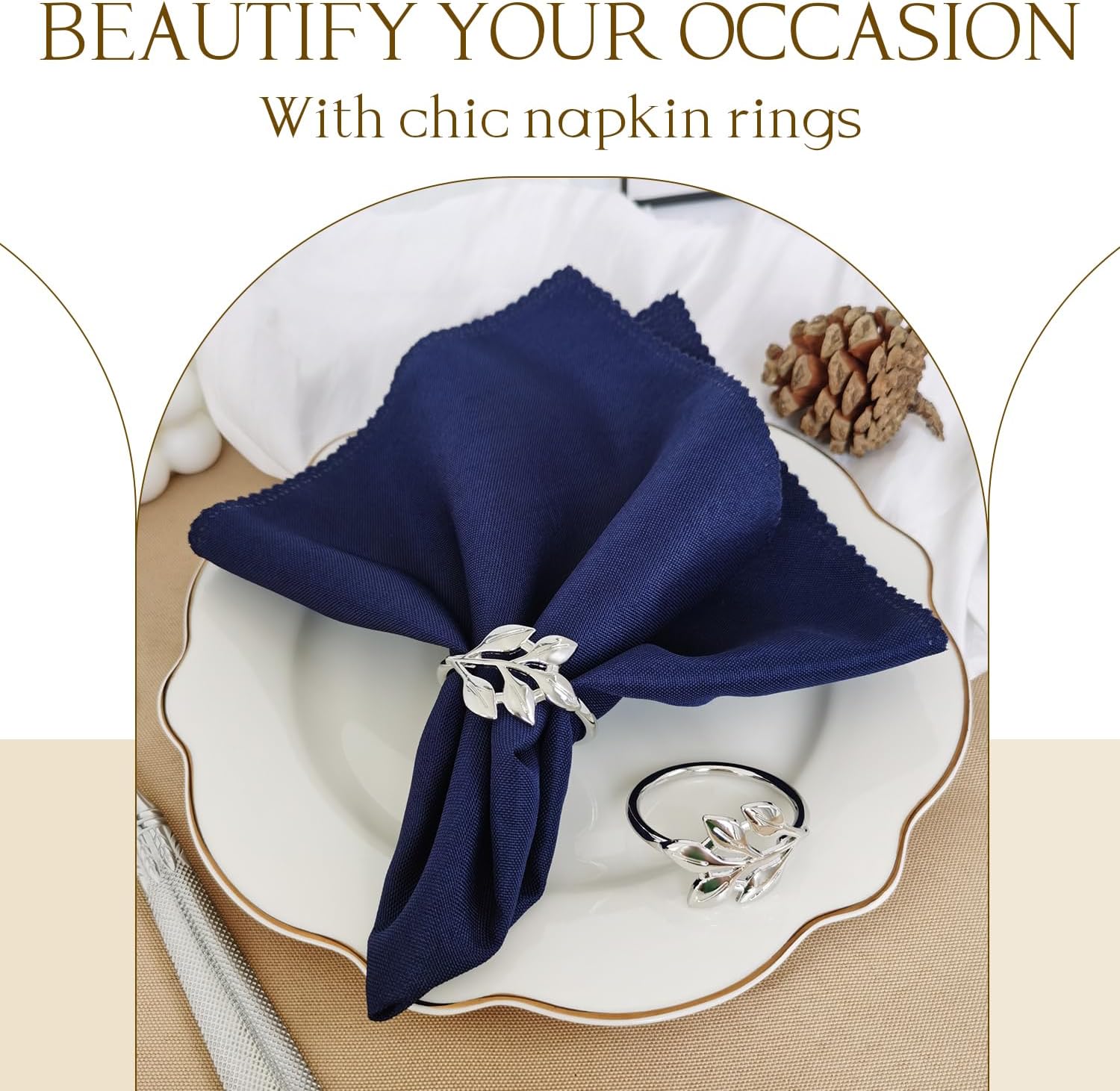 Silver Napkin Rings Set of 10 - Metal Napkin Rings for Table Settings, Weddings, Holiday Party Tables