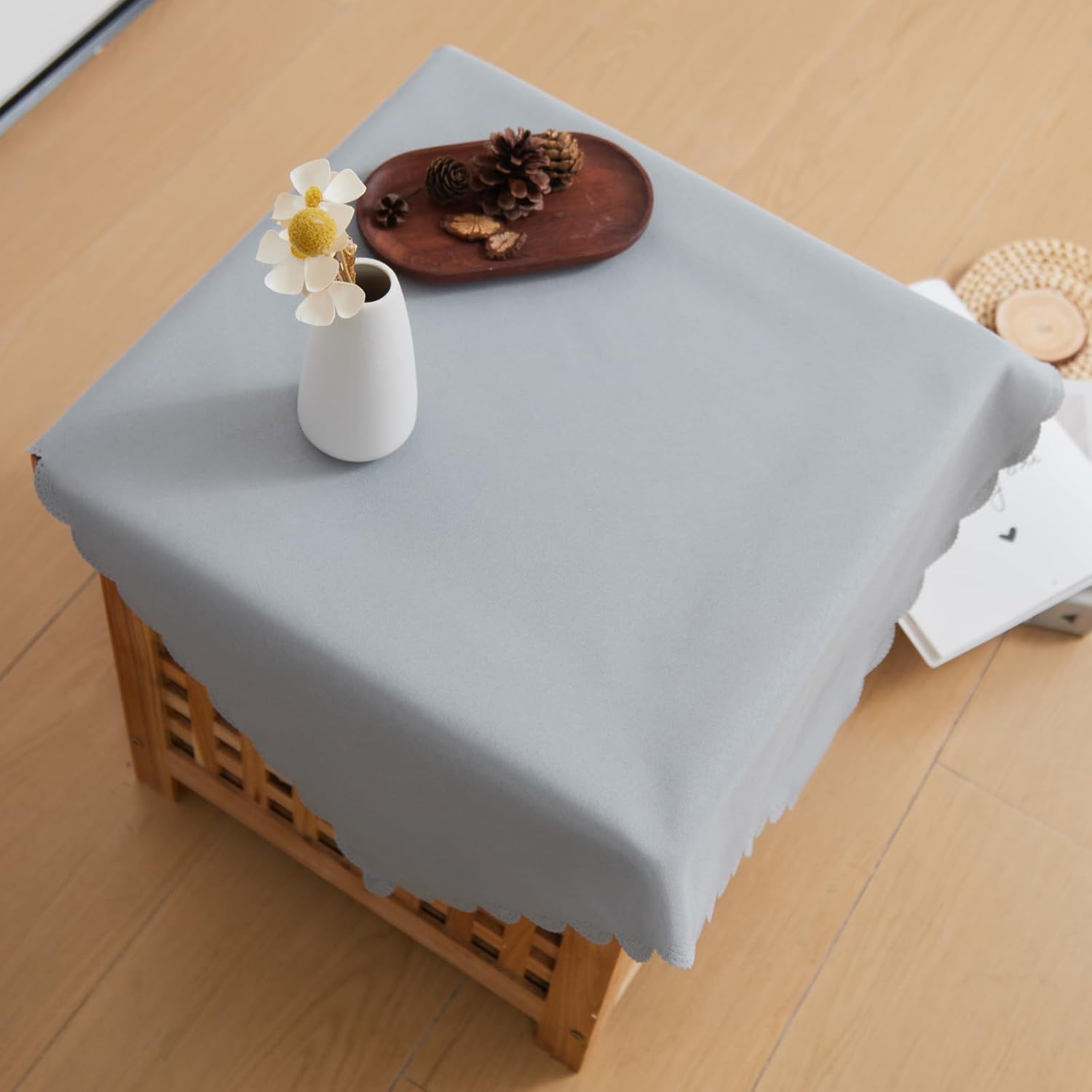• Proper Size: The 24 x 24 inch square scalloped edge tablecloth fits tables from 8 x 8 inches to 16 x 16 inches, each end drops approximately 4 inches to 8 inches. Your package will include 1 tablecloth.