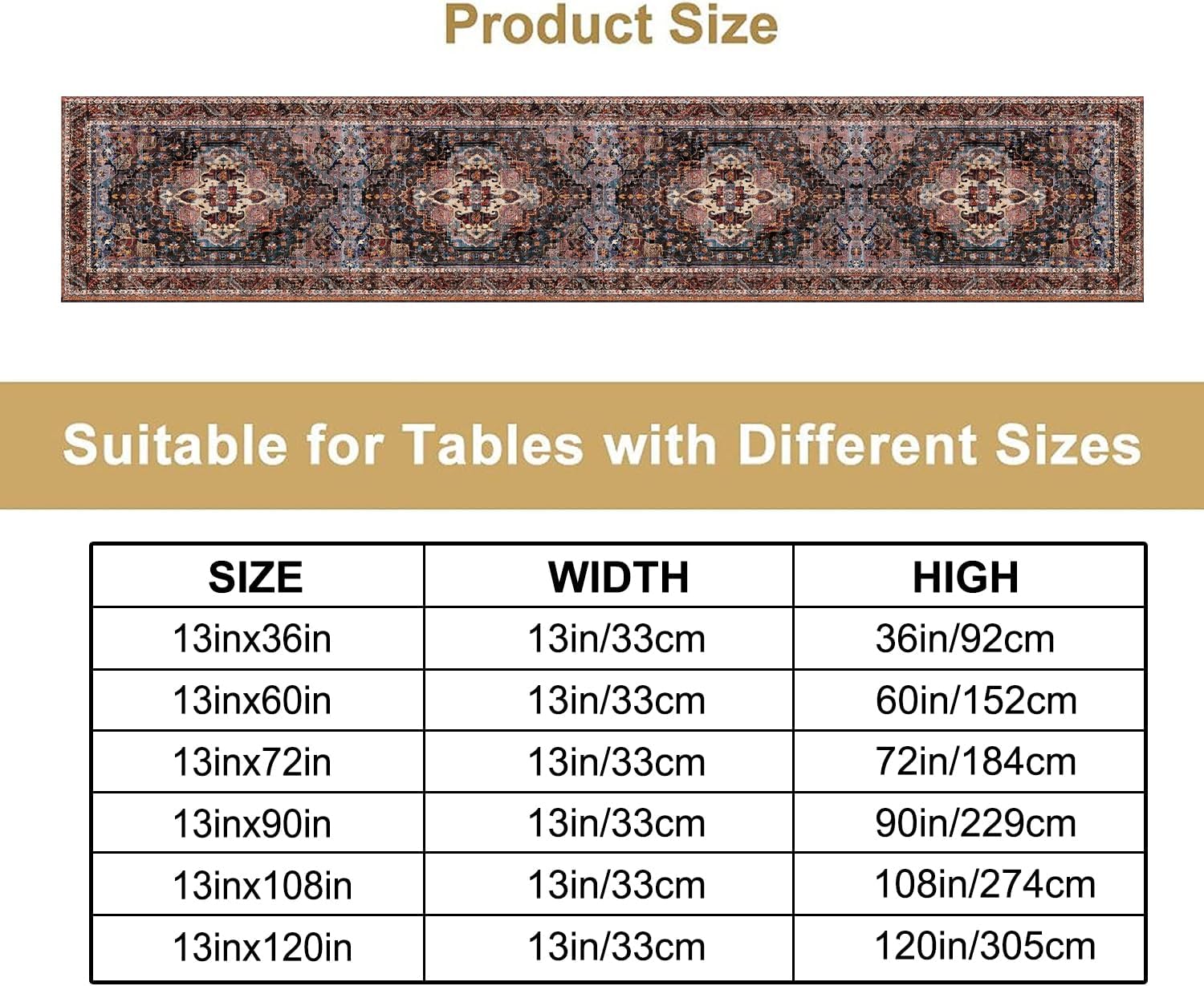 • Product Size : This tablecloth is 13 in ( 33 cm ) x 108 in ( 274 cm ), suitable for tables that can accommodate 8-10 people,better match your table and give you a pleasant dining experience