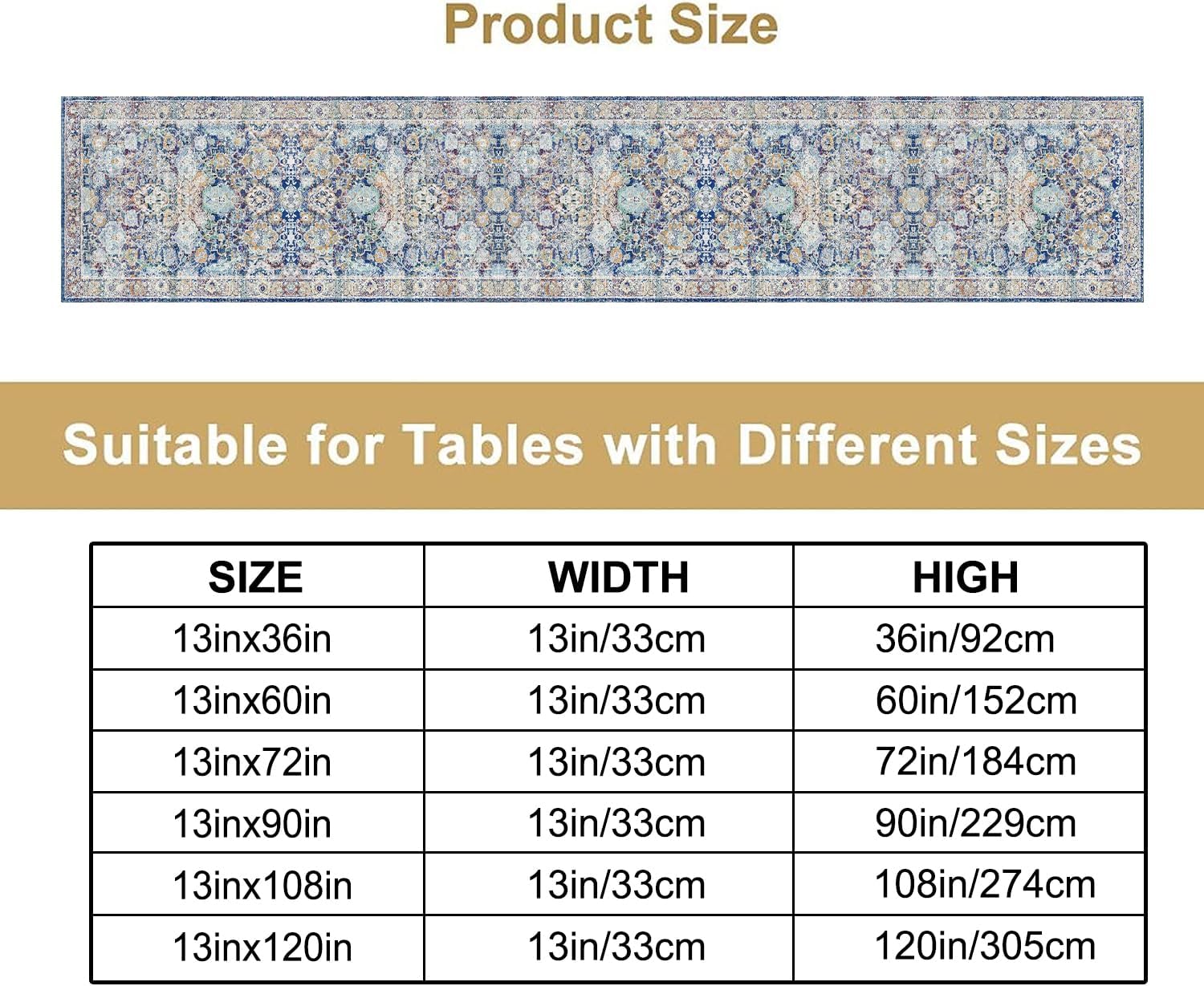 • Product Size : This tablecloth is 13 in ( 33 cm ) x 60 in ( 152 cm ), suitable for tables that can accommodate 4-6 people,better match your table and give you a pleasant dining experience