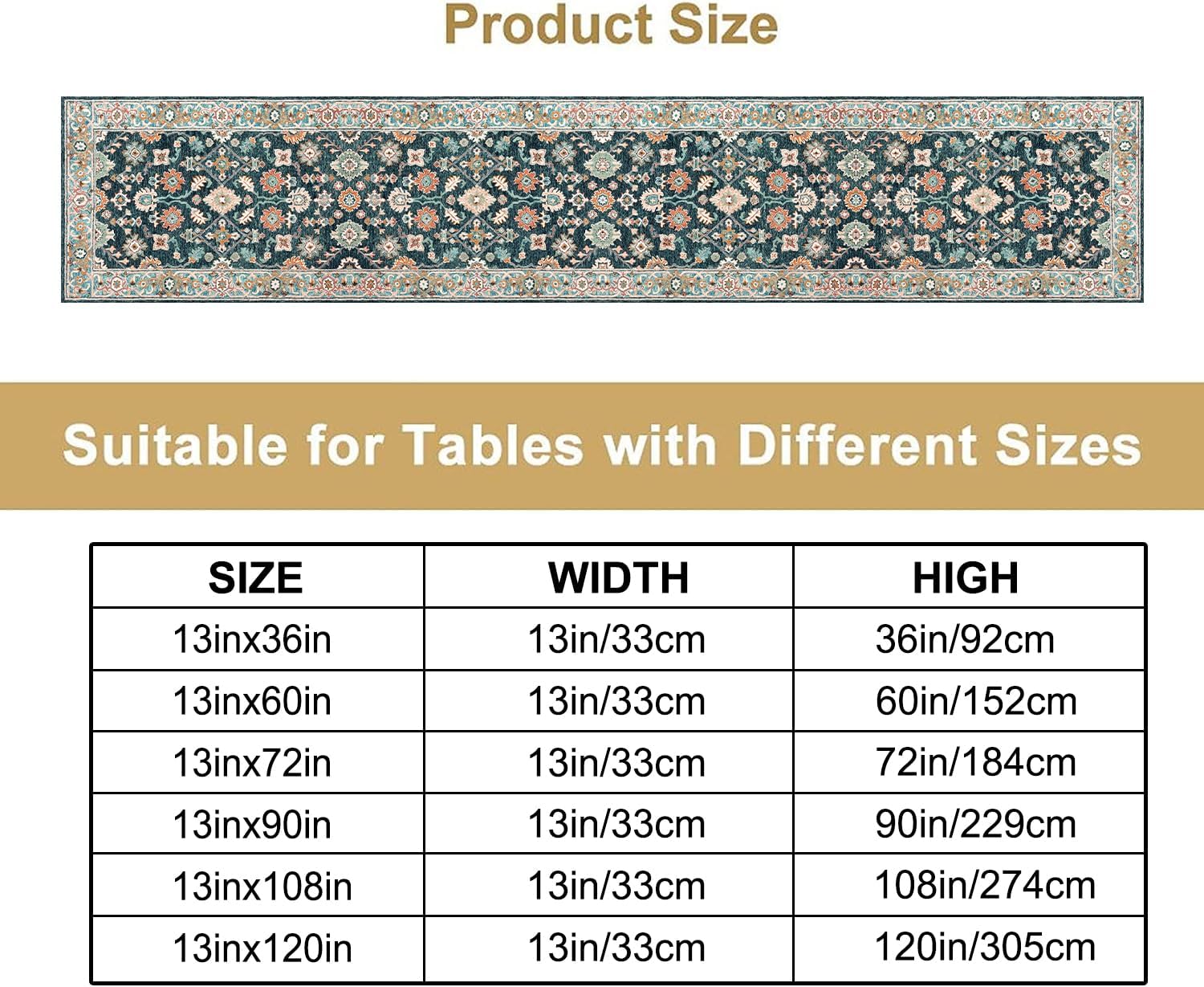 • Product Size : This tablecloth is 13 in ( 33 cm ) x 120 in ( 305 cm ), suitable for tables that can accommodate 10-12 people,better match your table and give you a pleasant dining experience