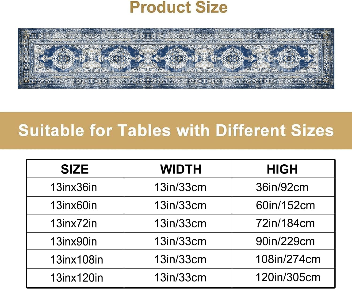 • Product Size : This tablecloth is 13 in ( 33 cm ) x 120 in ( 305 cm ), suitable for tables that can accommodate 10-12 people,better match your table and give you a pleasant dining experience