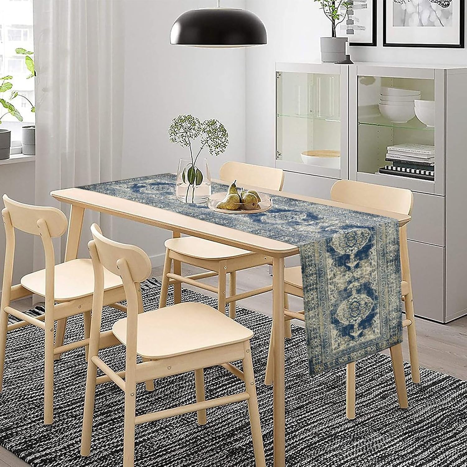 Vintage Boho Floral Table Runner, Rustic Country Farmhouse Blue Teal Retro Flower Pattern for Home Kitchen Table Decor Dining Coffee Room Party Decor 13x120in