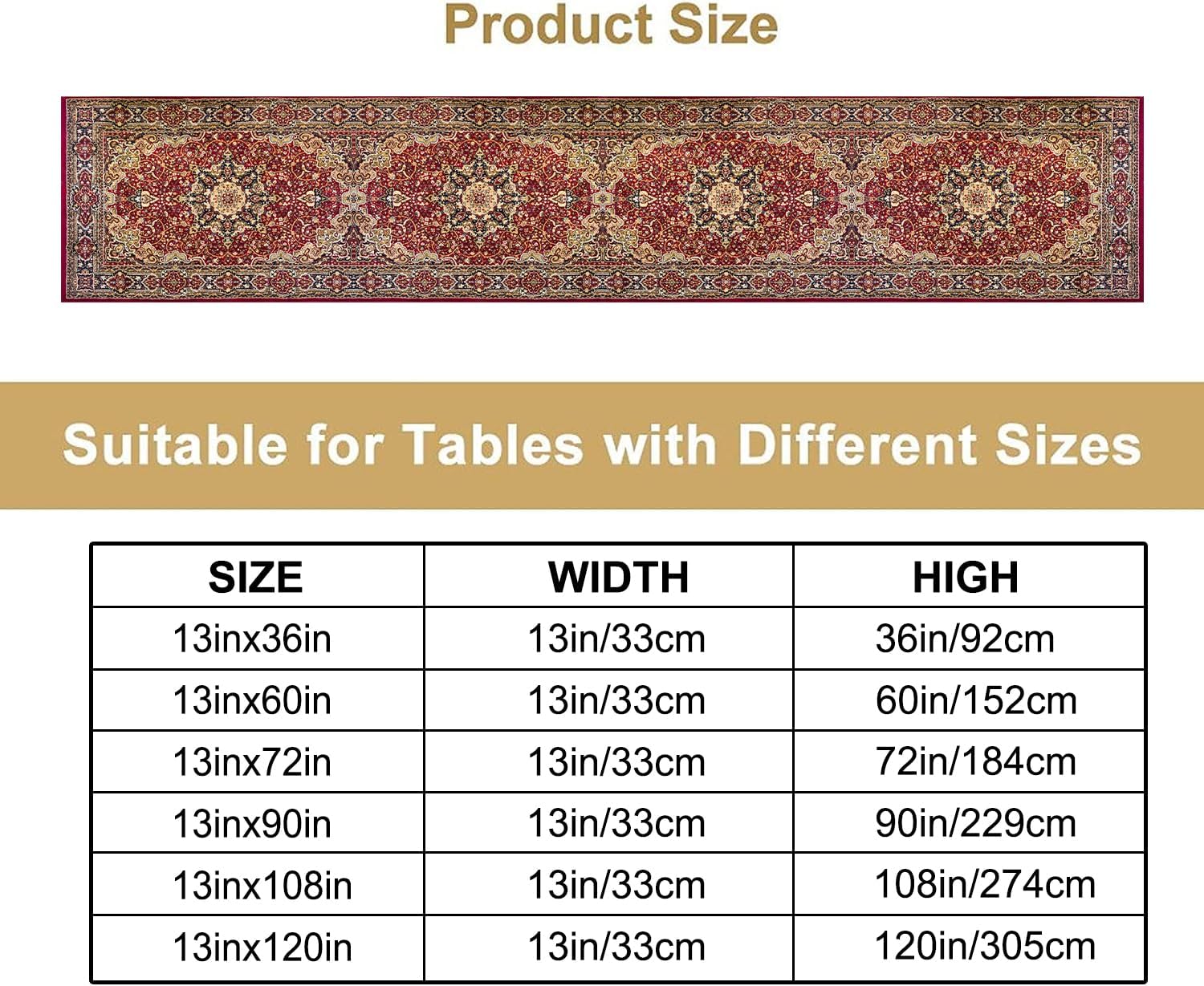 • Product Size : This tablecloth is 13 in ( 33 cm ) x 108 in ( 274 cm ), suitable for tables that can accommodate 8-10 people,better match your table and give you a pleasant dining experience