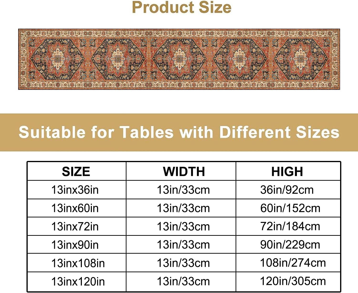 • Product Size : This tablecloth is 13 in ( 33 cm ) x 120 in ( 305 cm ), suitable for tables that can accommodate 10-12 people,better match your table and give you a pleasant dining experience