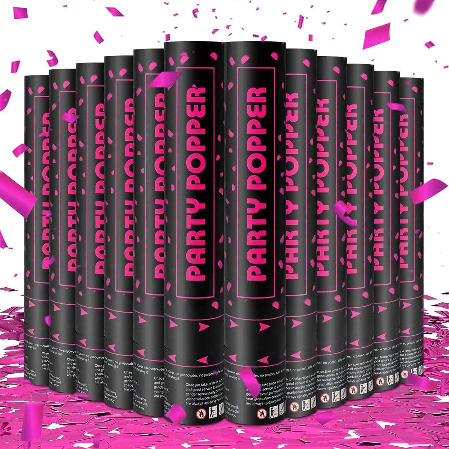 • 12 inch Confetti Poppers Pink - Each confetti cannon bulk includes 12 pcs high-quality confetti cannons filled with dazzling pink confetti,designed to add excitement and create unforgettable moments.Whether you're celebrating a gender reveal party,baby shower, birthday, graduation, or any festive event, confetti poppers will bring the party to life!