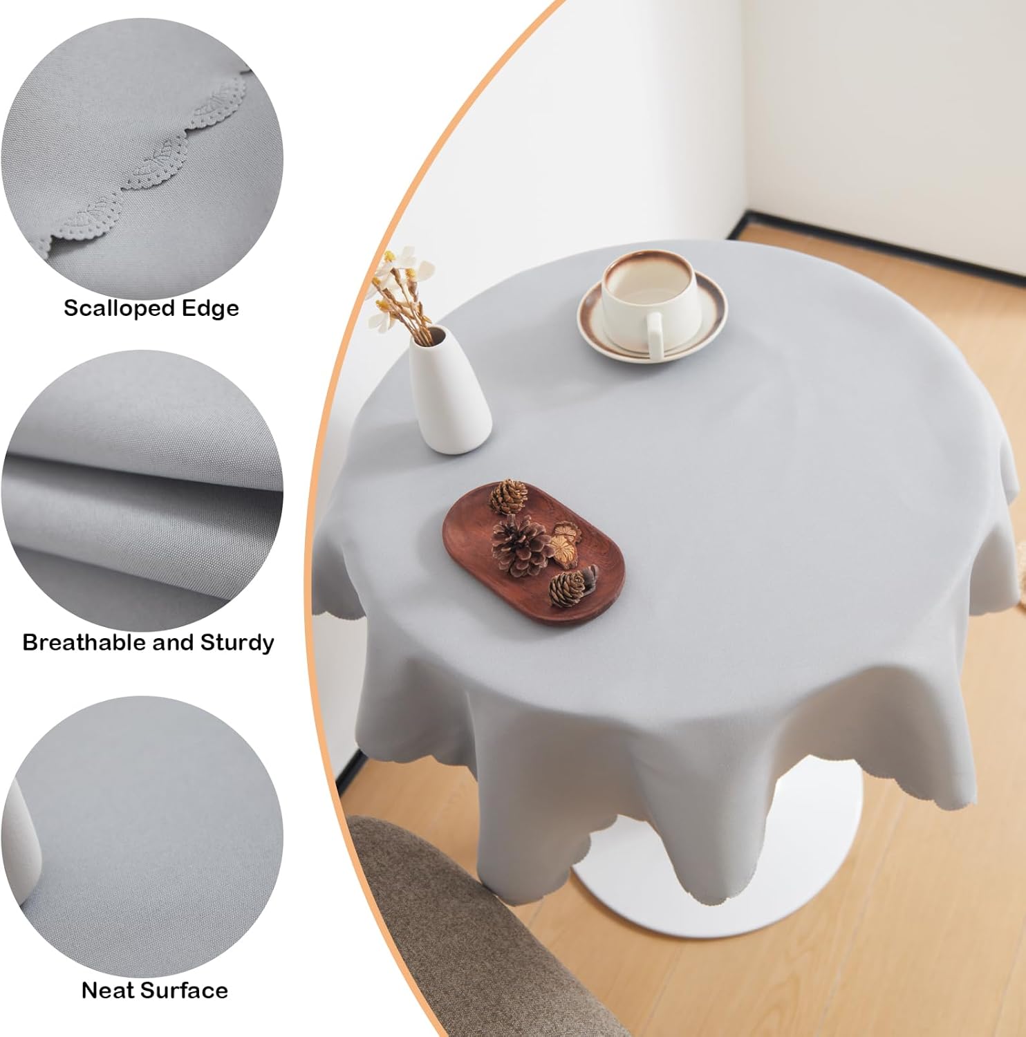 • Design Features: The solid color tablecloth is carefully designed with rounded embossed edges to enhance the beauty of the tablecloth. Simple and neat appearance and unique design better fit into your decoration style.