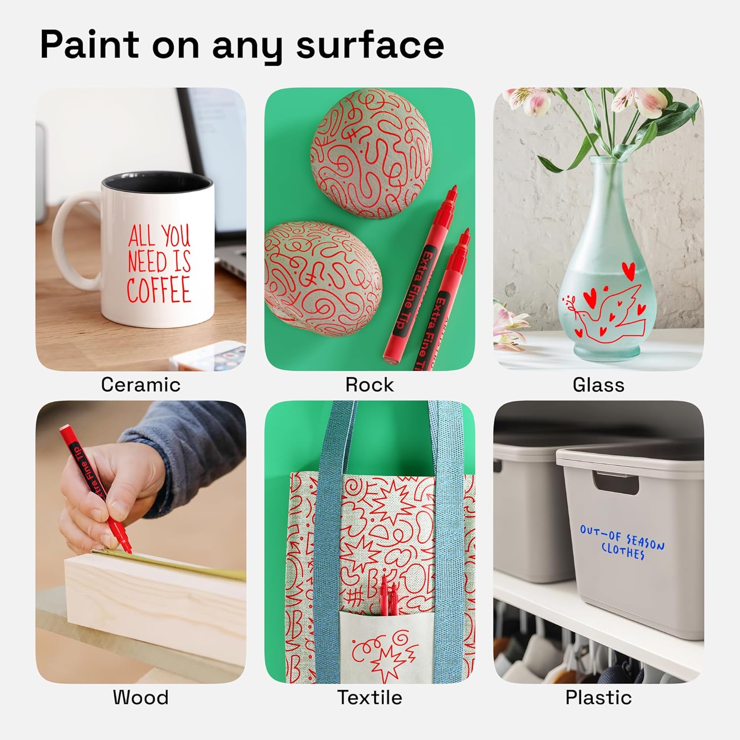 • Extra-Fine Tip: The red oil-based paint marker features a durable 0.7mm extra-fine tip for precise detailing. Great for fine line work, small lettering, rock painting, DIY decorations, and custom designs for Christmas, birthdays, weddings, or any special event.