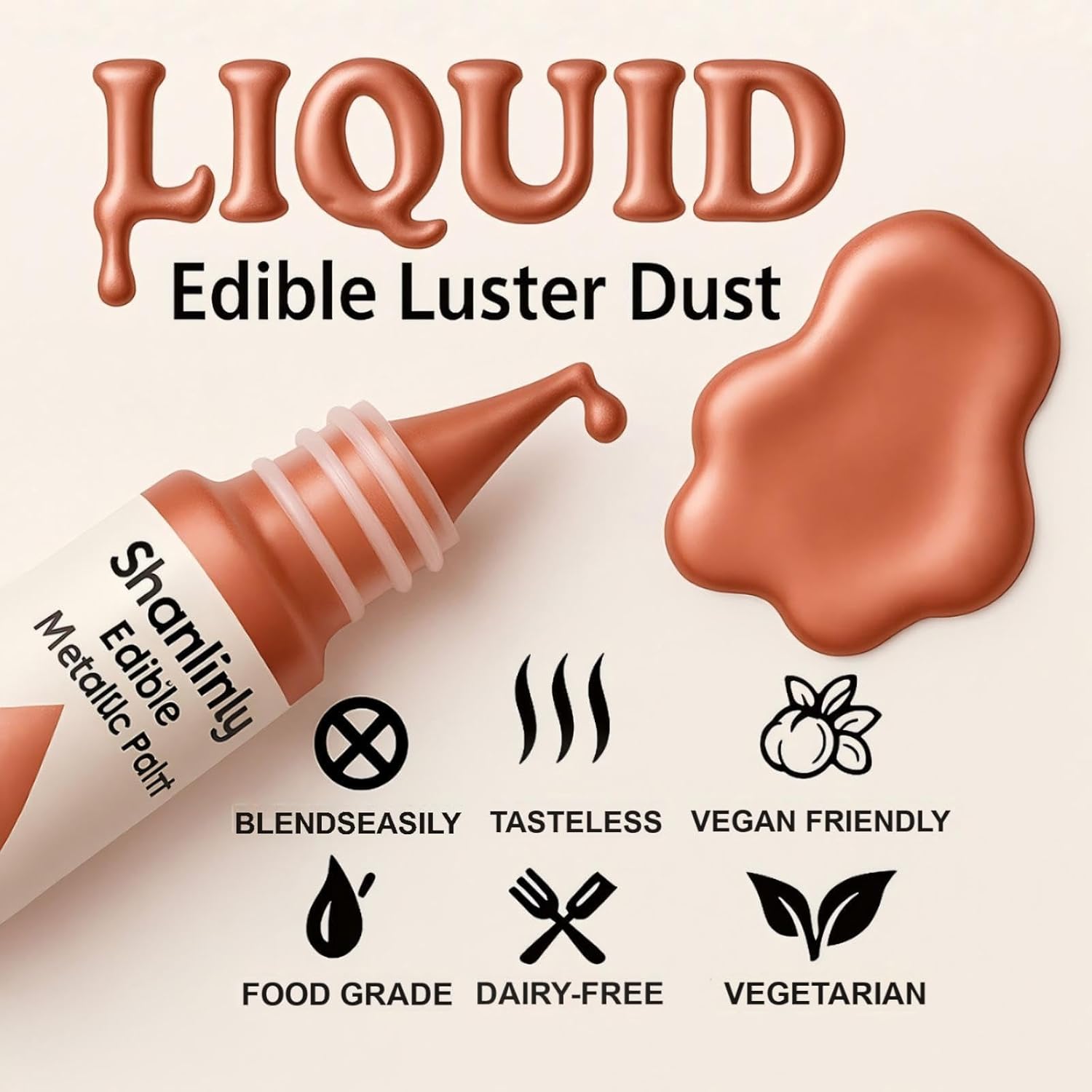 • 🎨 Vibrant, Food-Safe Shine– Made with MSDS-compliant ingredients, our non-toxic metallic luster dust edible rose gold paint adds luxurious gold, silver, and colored finishes to cakes, cookies, chocolates, and more—100% edible and safe!