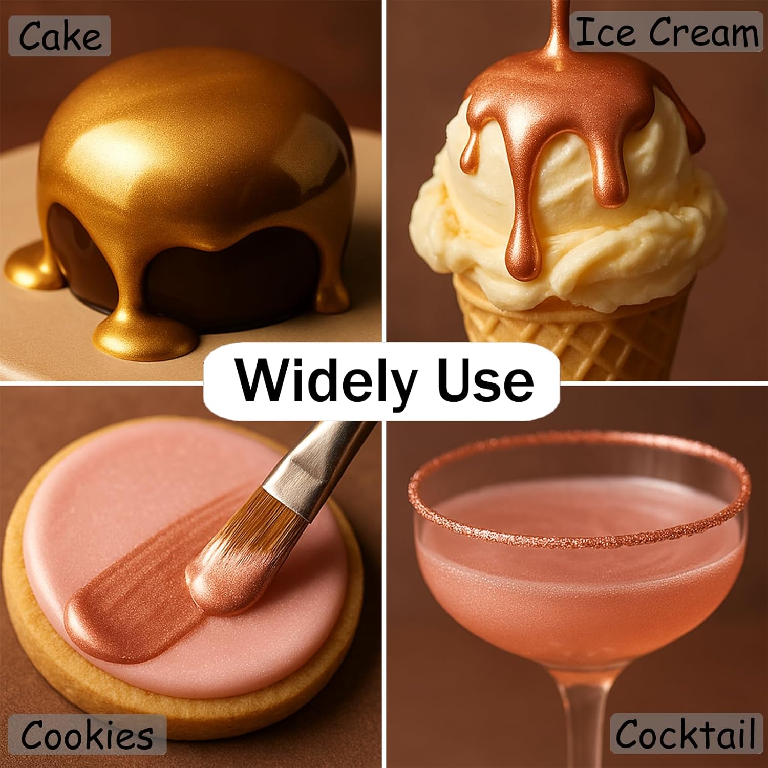 • 💎 Professional Results at Home– Unlike messy glitter or artificial sprays, our rich pigment delivers high-end metallic luster just like a pro baker’s secret guide!