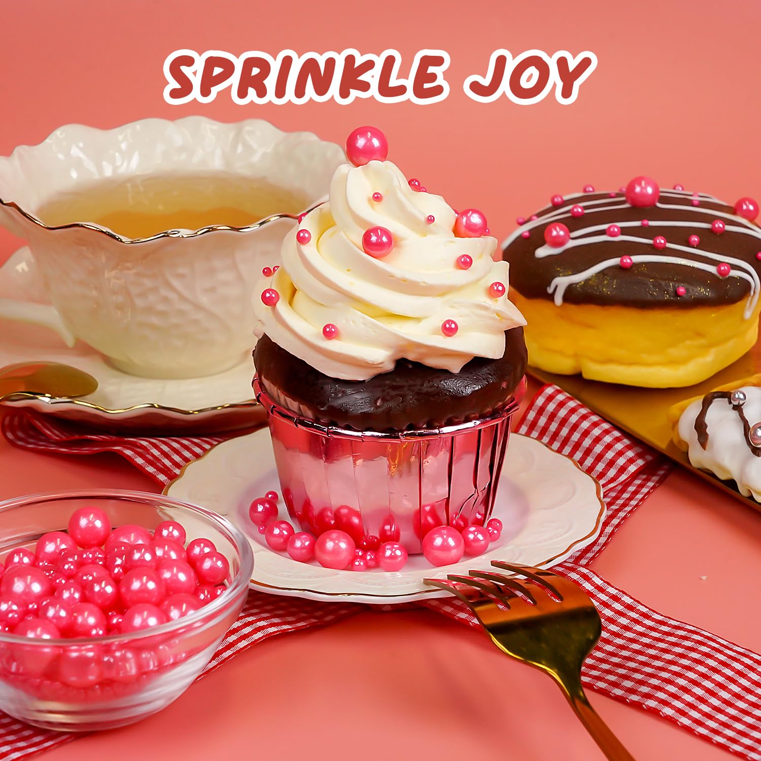 Edible Pink Sugar Pearl Sprinkles, Pearl Sugar Sprinkles, Cake Decorations, Cupcake Toppers, Ice Cream Toppings, Wedding Party Halloween Christmas Supplies,180g/6.35oz