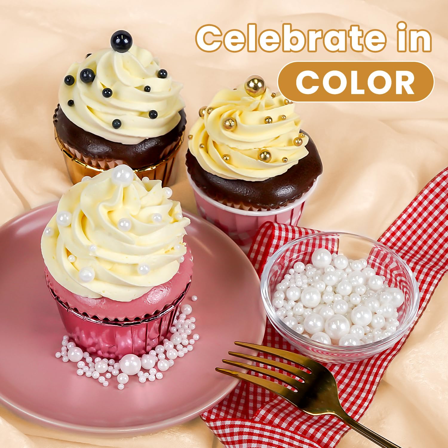 • Safe & Certified Pearls: Food-grade white pearls sugar sprinkles made with non-GMO ingredients, 0% preservatives. Kosher/Halal-certified in facilities with no allergens (soy/nut/dairy). Tamper-proof sealed for safety.