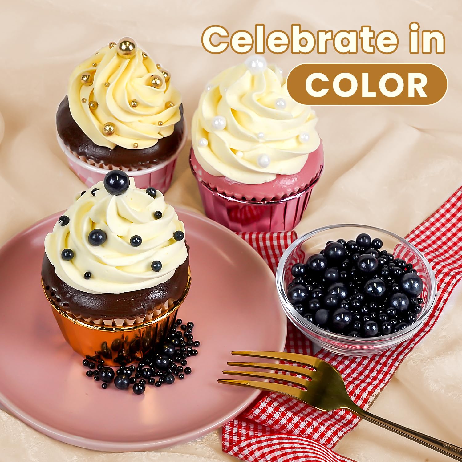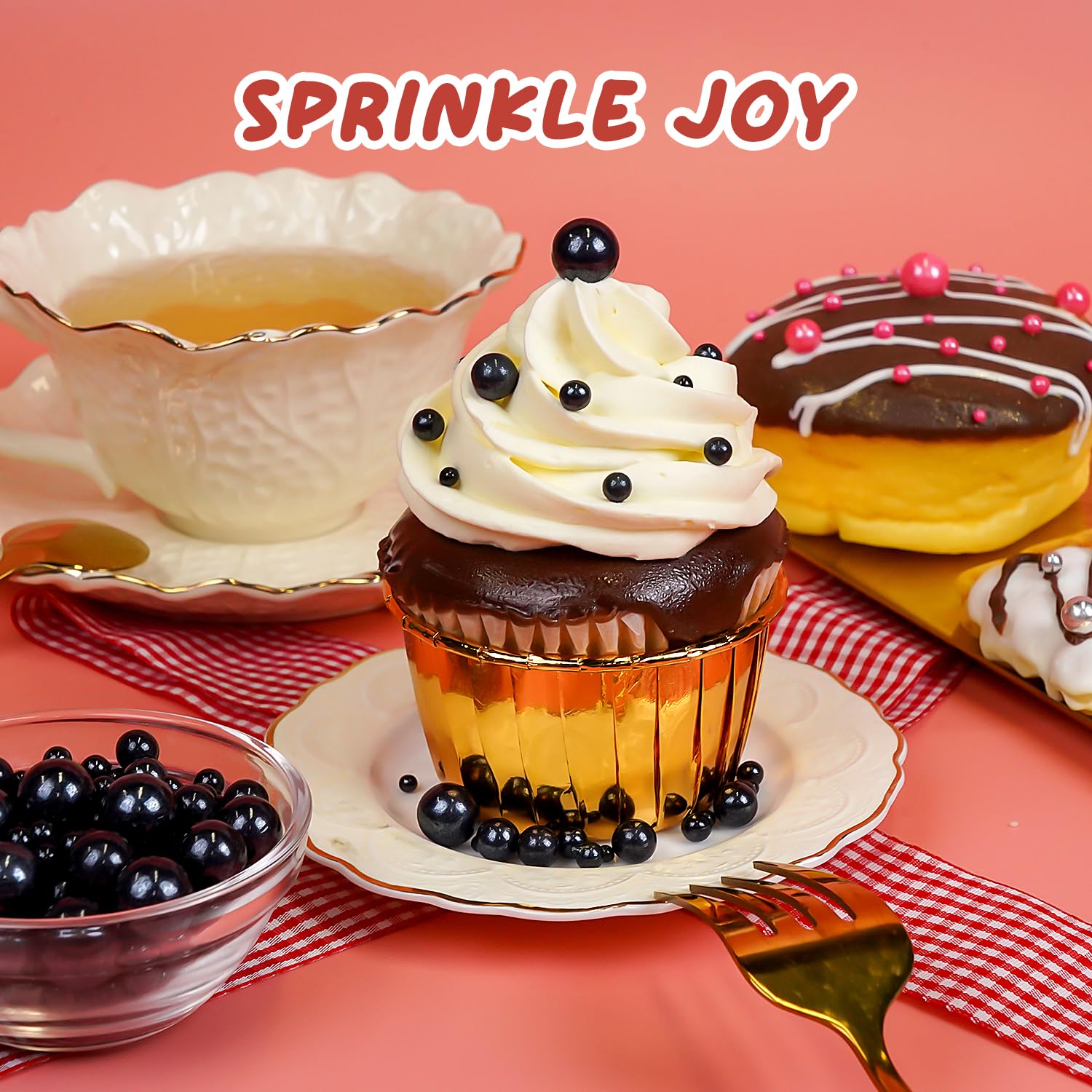 • Safe & Certified Pearls: Food-grade black pearls sugar sprinkles made with non-GMO ingredients, 0% preservatives. Kosher/Halal-certified in facilities with no allergens (soy/nut/dairy). Tamper-proof sealed for safety.