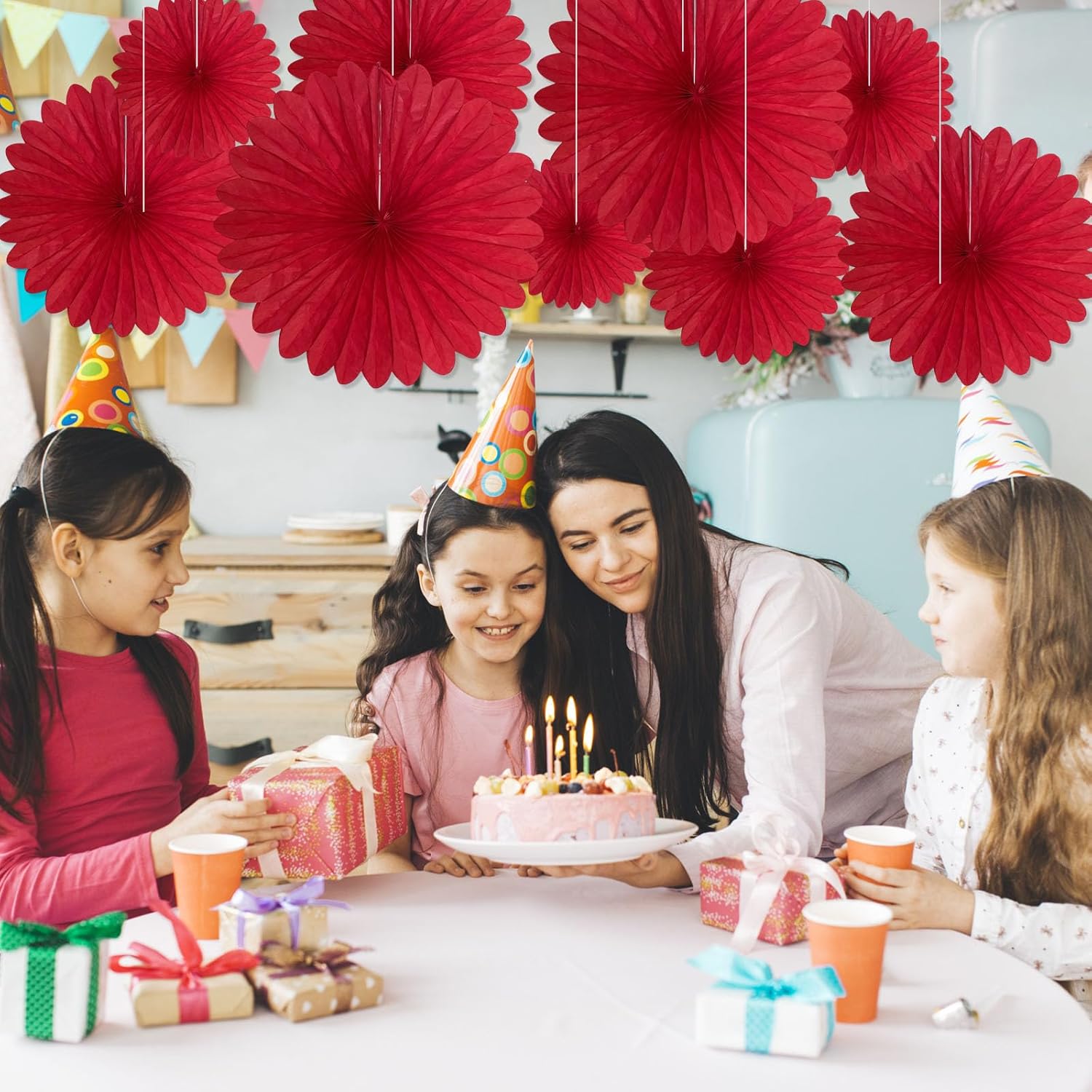 20 Pcs Red Hanging Paper Fan, Round Paper Fans Decorations Set for Weddings, Birthdays, Engagement, Bridal Shower, Baby Shower Event, Graduation, Party Supplies Decor