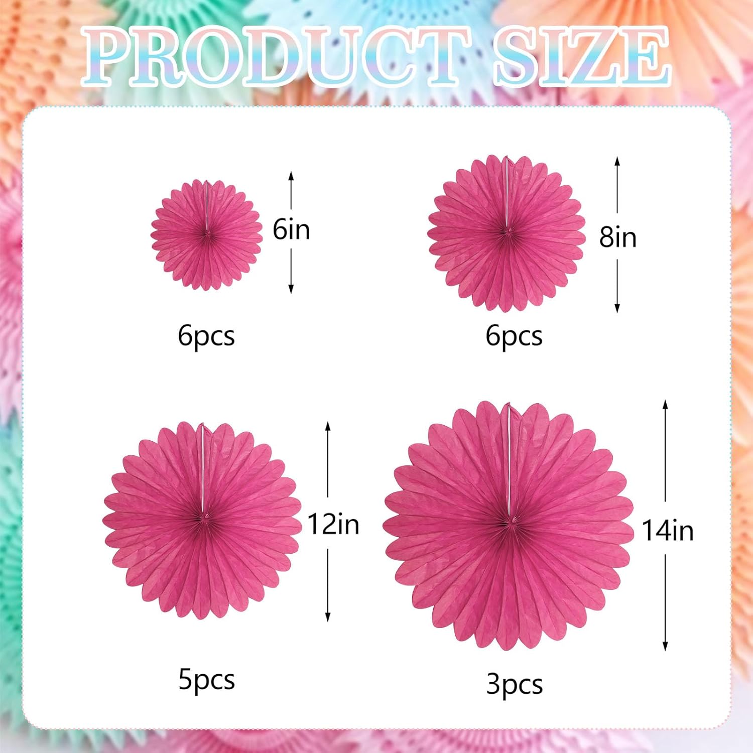 • 【Hanging Paper Fan Set】Paper fan set includes 20 paper fans of different sizes, among which the paper flower fan sizes are 6 inches * 6, 8 inches * 6, 12 inches * 5, and 14 inches* 3. You can add a splash of vivid color to your party with our hanging paper fans.