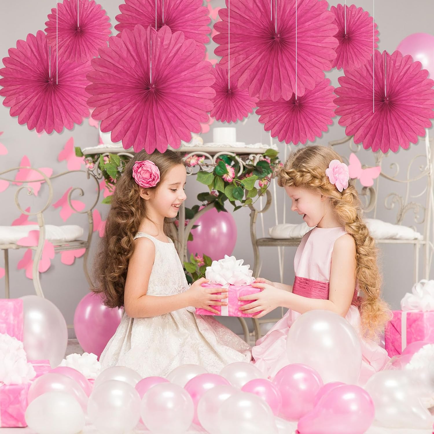 20 Pcs Fuchsia Hanging Paper Fan, Round Paper Fans Decorations Set for Weddings, Birthdays, Engagement, Bridal Shower, Baby Shower Event, Graduation, Party Supplies Decor