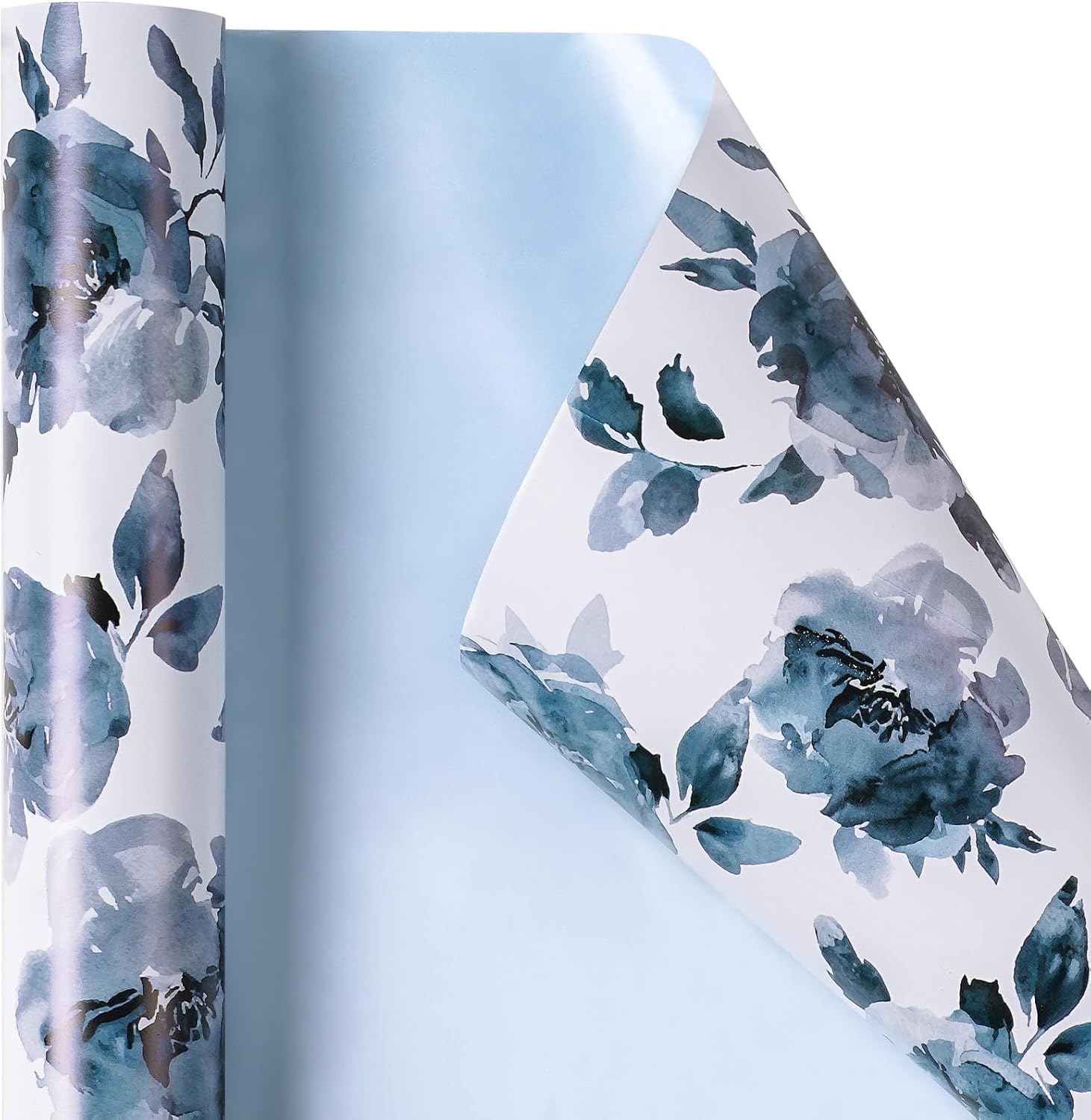 • Elegant Reversible Design: This double-sided wrapping paper features a watercolor blue floral pattern on one side and a solid light blue color on the other, offering a versatile and stylish look for different occasions