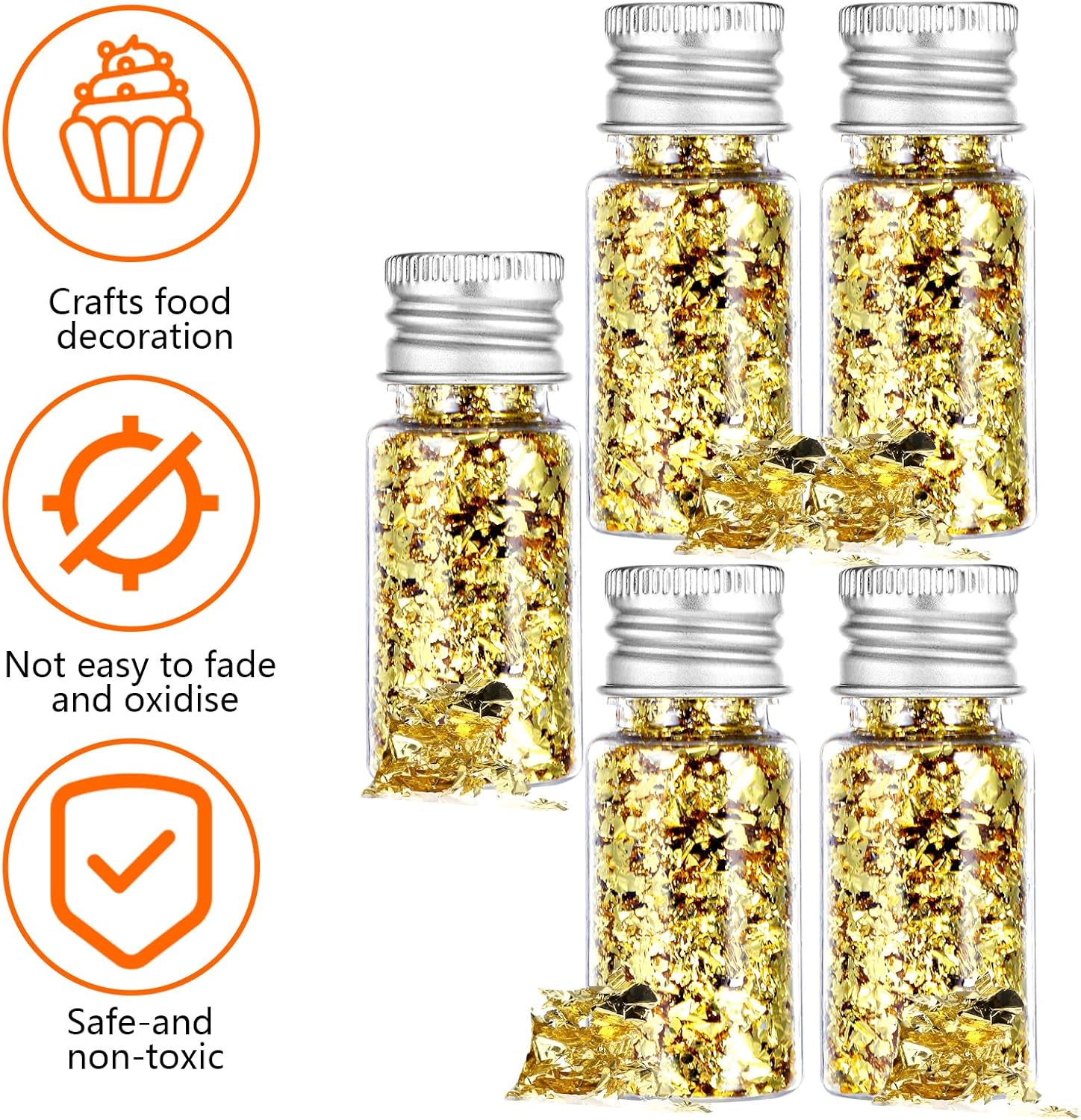 • WHAT YOU WILL GET: You will get 5 bottles of foil sheets for crafts with a clip, the bottle size is 2.09 × 0.87 inches, the clip length is 4.72 inches, gold leaf is enough to meet your various usage needs.