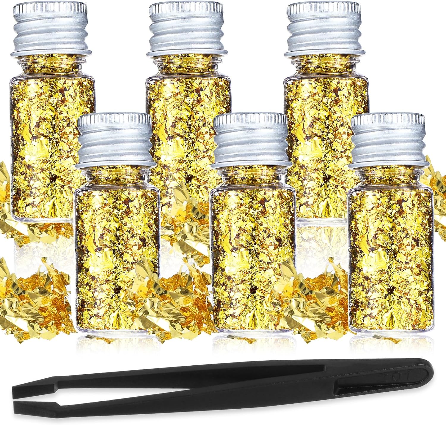 • WHAT YOU WILL GET: You will get 6 bottles of foil sheets for crafts with a clip, the bottle size is 2.09 × 0.87 inches, the clip length is 4.72 inches, gold leaf is enough to meet your various usage needs.