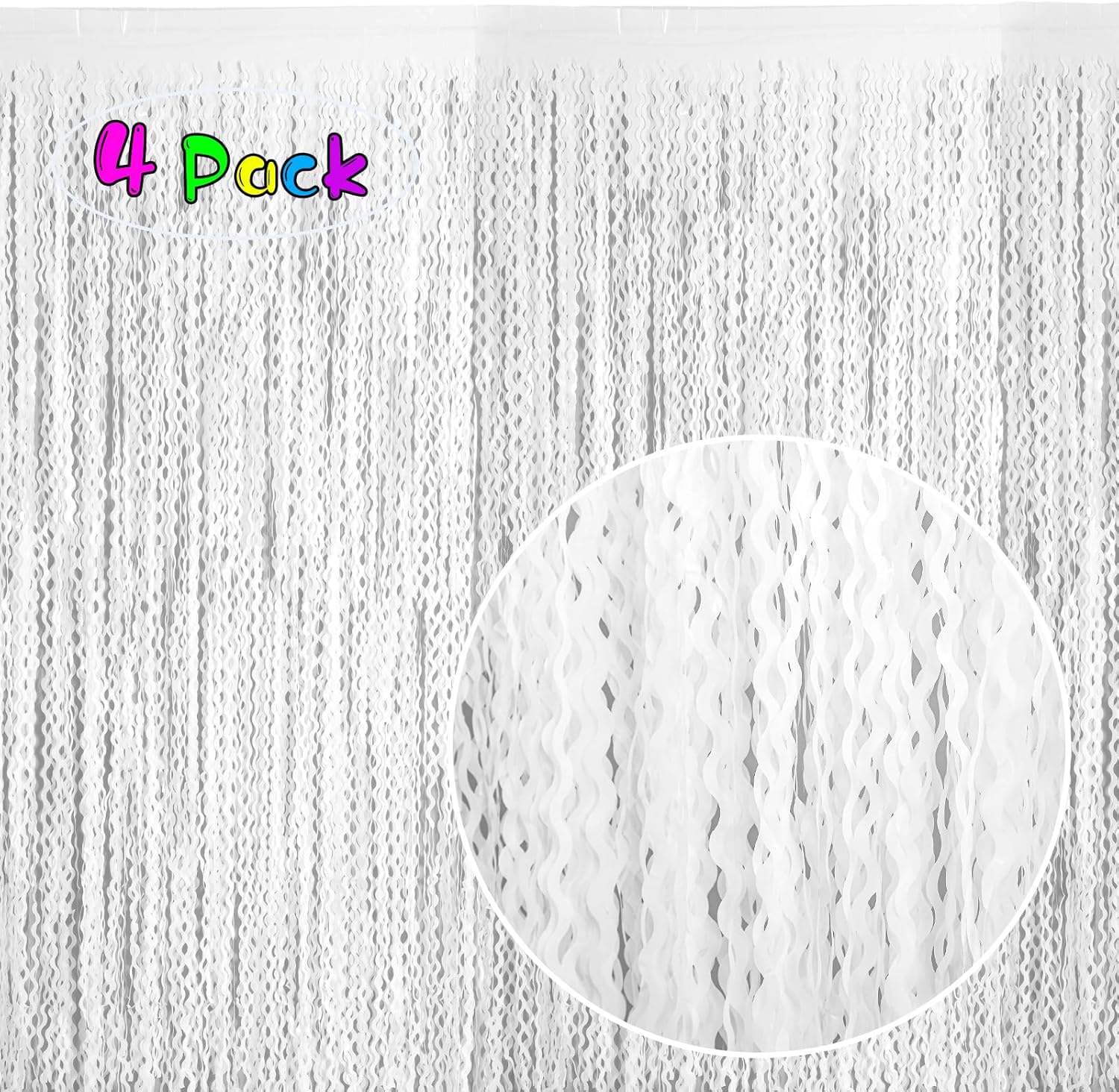 • Package Contents: 4 pack white wavy foil fringe curtains,each curtain is 3.3ft x6.6ft,You can cut the white metallic backdrop into the suitable length for use,Wonderful accessories for decorating doors and walls