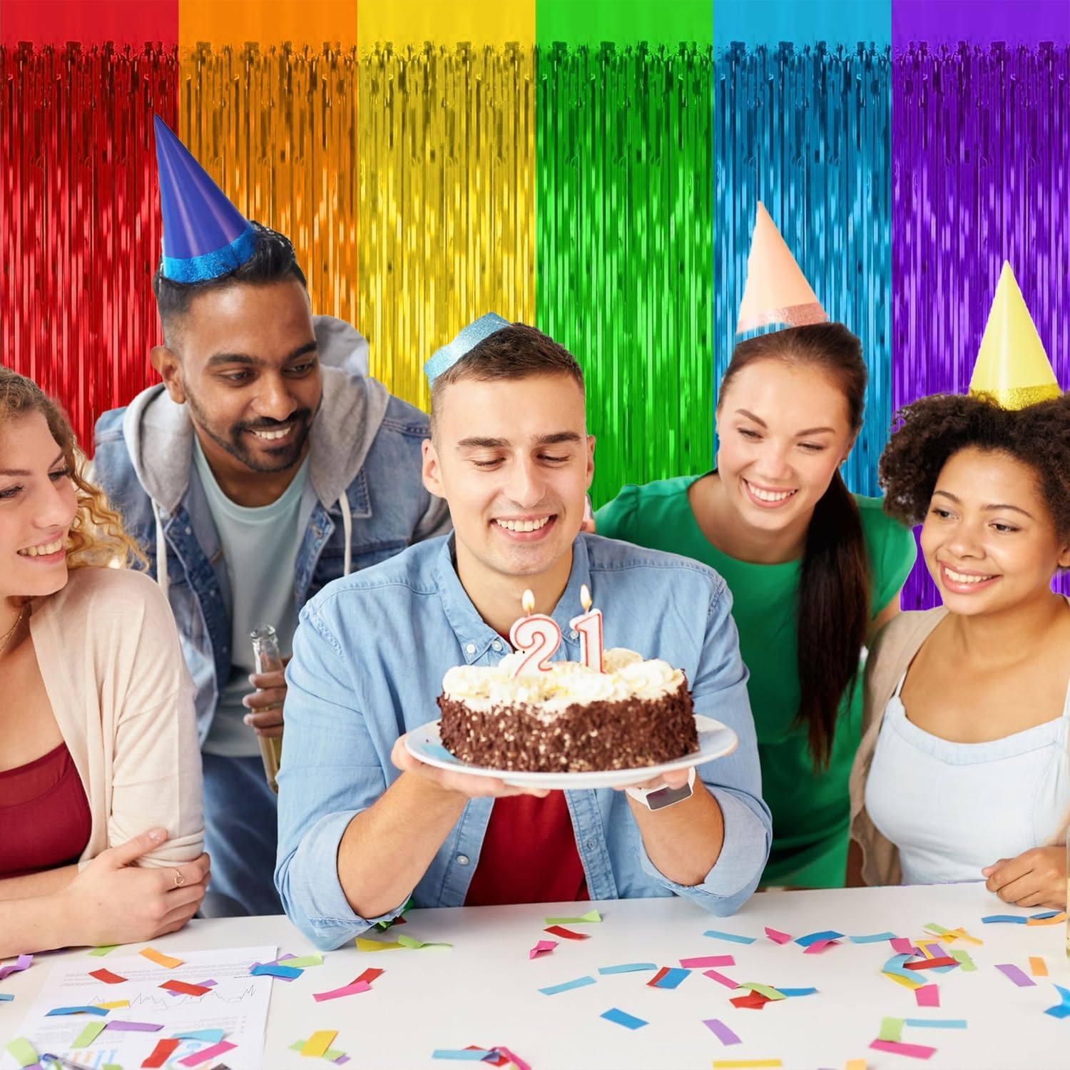 • Rainbow Photo Booth Backdrop: Our unique tinsel foil fringe curtains are the perfect photo backdrop for every rainbow party decoration and home decor. You will be amazed at the colorful atmosphere and view they create.