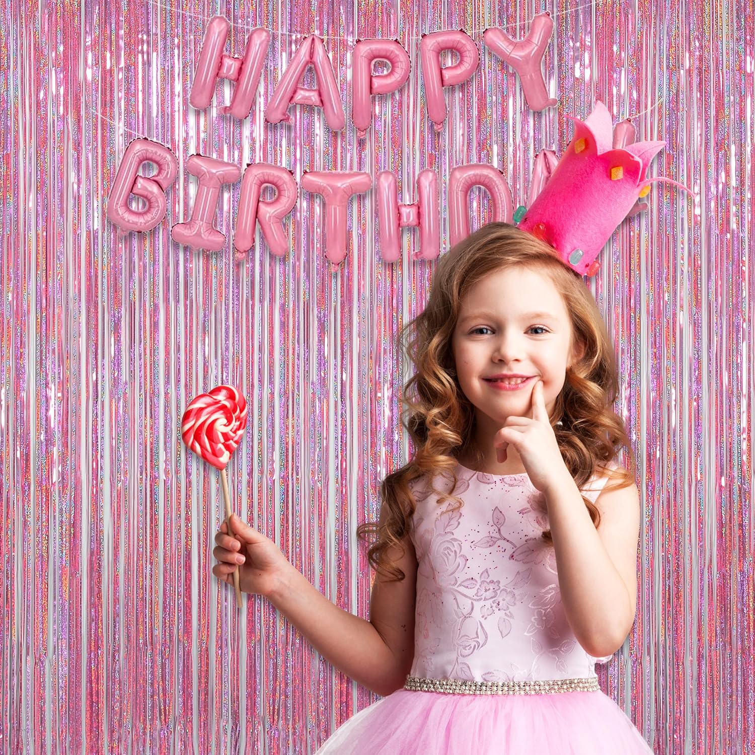 • Double-Pack Glamour: Two full-coverage pink foil fringe curtains create instant magic for doors, walls, or photo zones. The laser-cut tinsel reflects light beautifully, making it a must-have for unicorn-themed birthdays, mermaid baby showers, and dazzling bachelorette parties