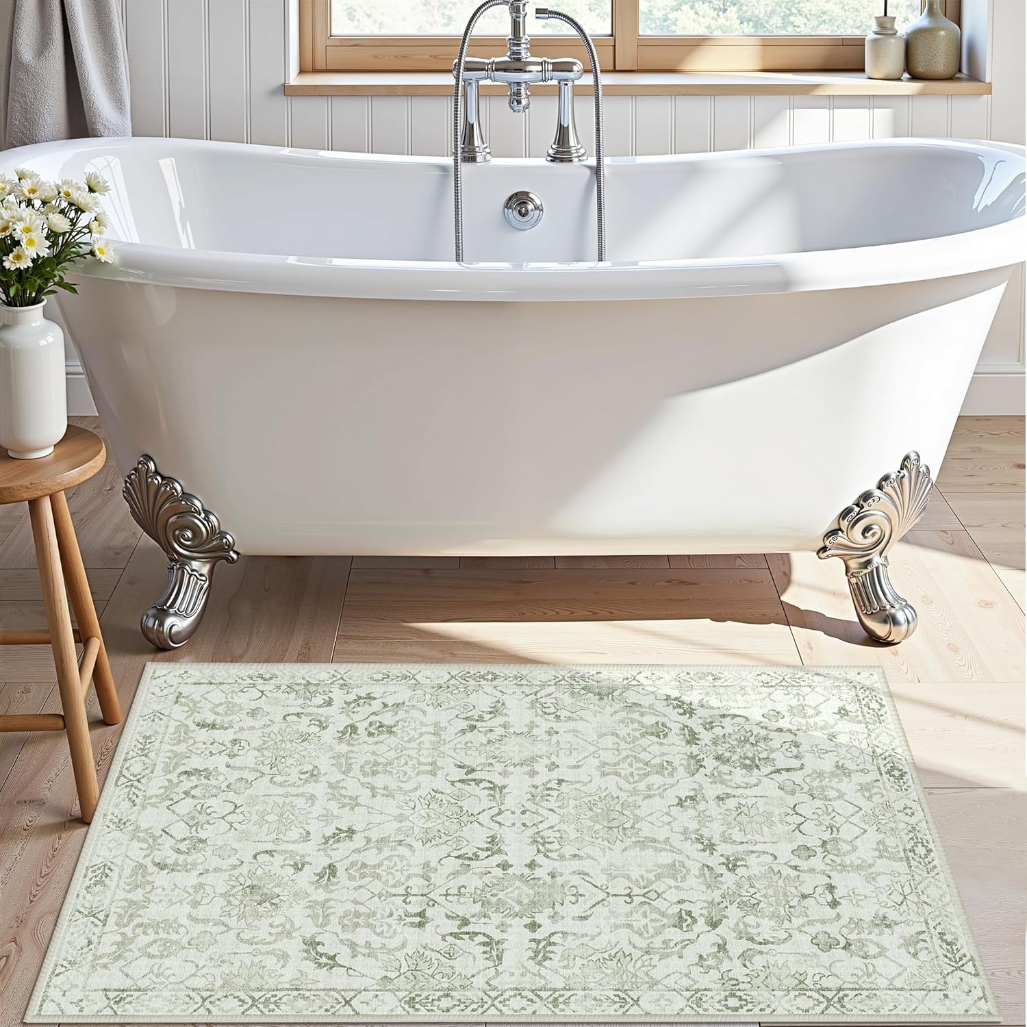 • Deerly Vintage Floral Entryway Rug: This small area rug features trendy faded style unique neutral distressed floral pattern, vintage tones combines the sage green and ivory color, creating a comfortable and warm family environment. Rugs for entryway are suitable for indoor entrance, bedroom, kitchen, bathroom.