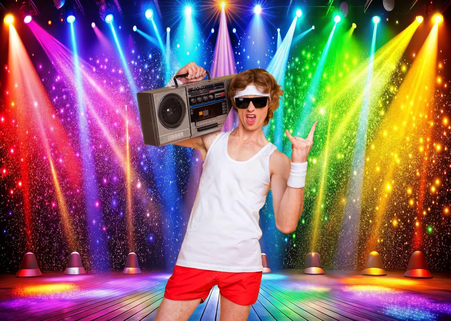 • 🎉 Vibrant Rainbow Light Design – Featuring a dazzling array of rainbow spotlights and glitter effects, this backdrop instantly creates a festive atmosphere for parties, concerts, or photoshoots.