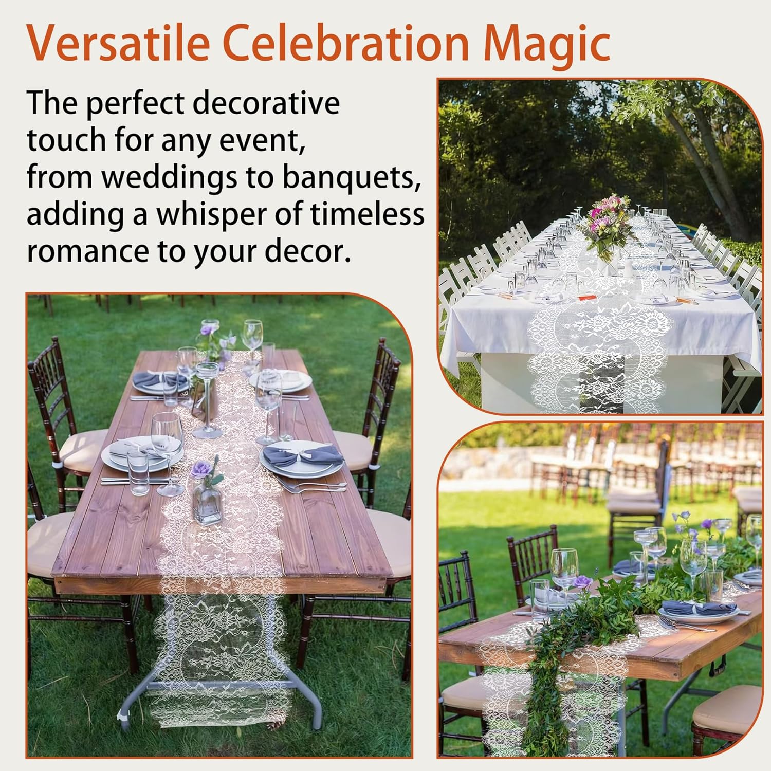 • 【Vintage Elegant Design】Delicate white lace with embroidered floral motifs evokes a rustic bohemian charm, perfect for weddings, bridal showers, or vintage-themed parties. The neutral white tone complements a variety of styles—from farmhouse tables to modern home settings—adding a timeless touch to any occasion.