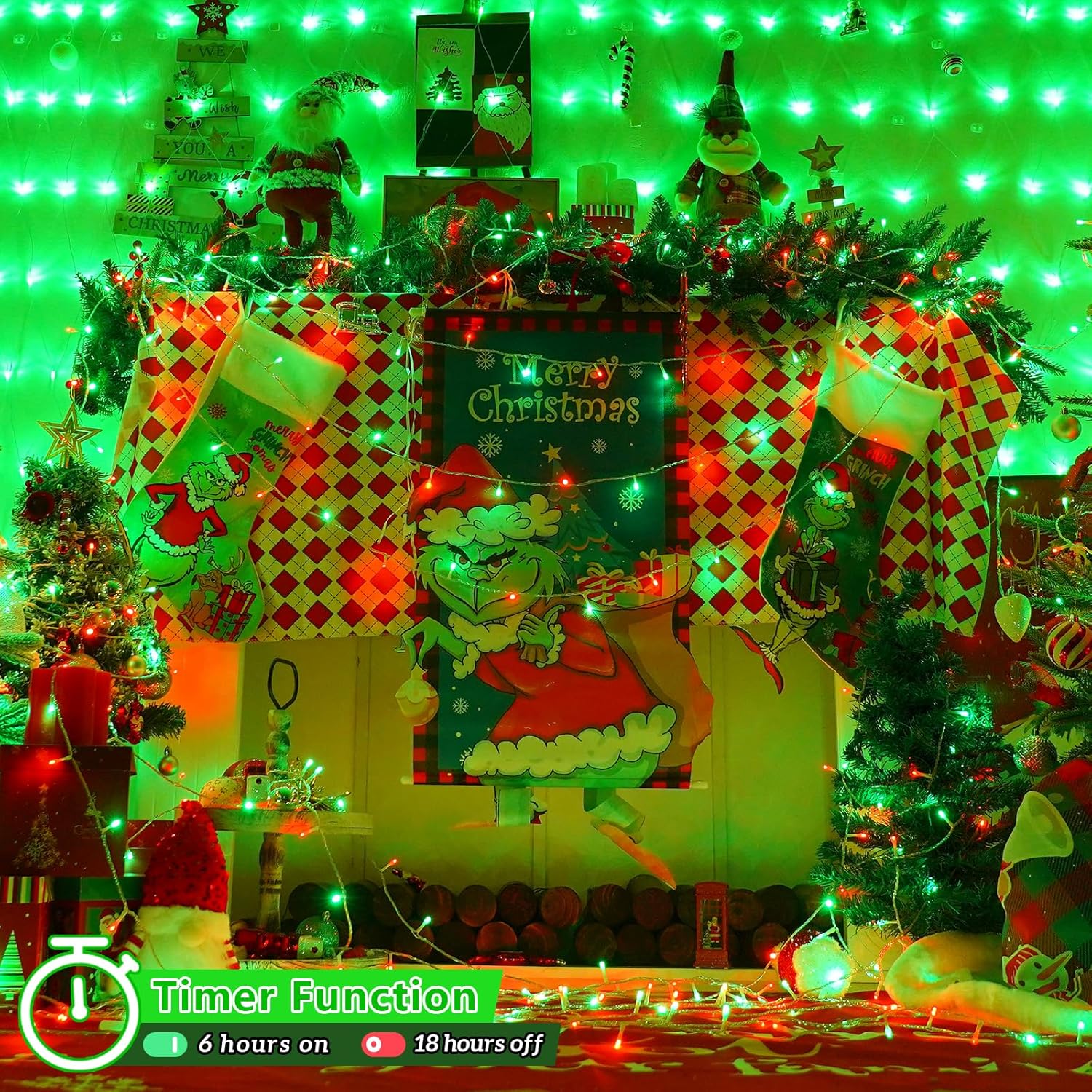 YEGUO 165ft 500 LED Red and Green Christmas Lights Outdoor Waterproof, Clear Wire String Lights Indoor Plug in, 8 Modes Clear Wire Twinkle Tree Light for Xmas Party Garden