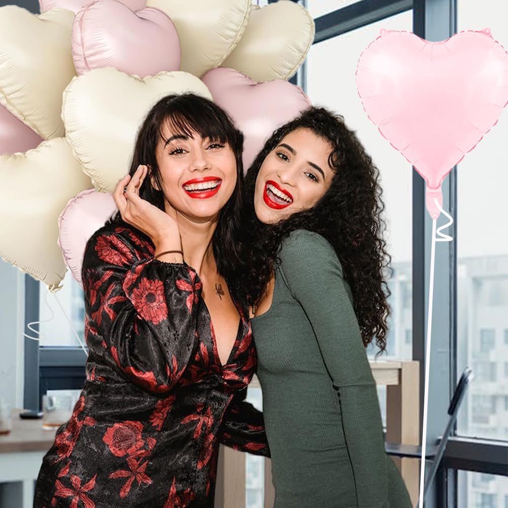 Baby Pink & Baby White Heart Balloons,18 Inch Foil Love Heart Shaped Balloons for Valentines Birthday Wedding Engagement Anniversary Party Graduation Baby Shower Decorations 12Pcs