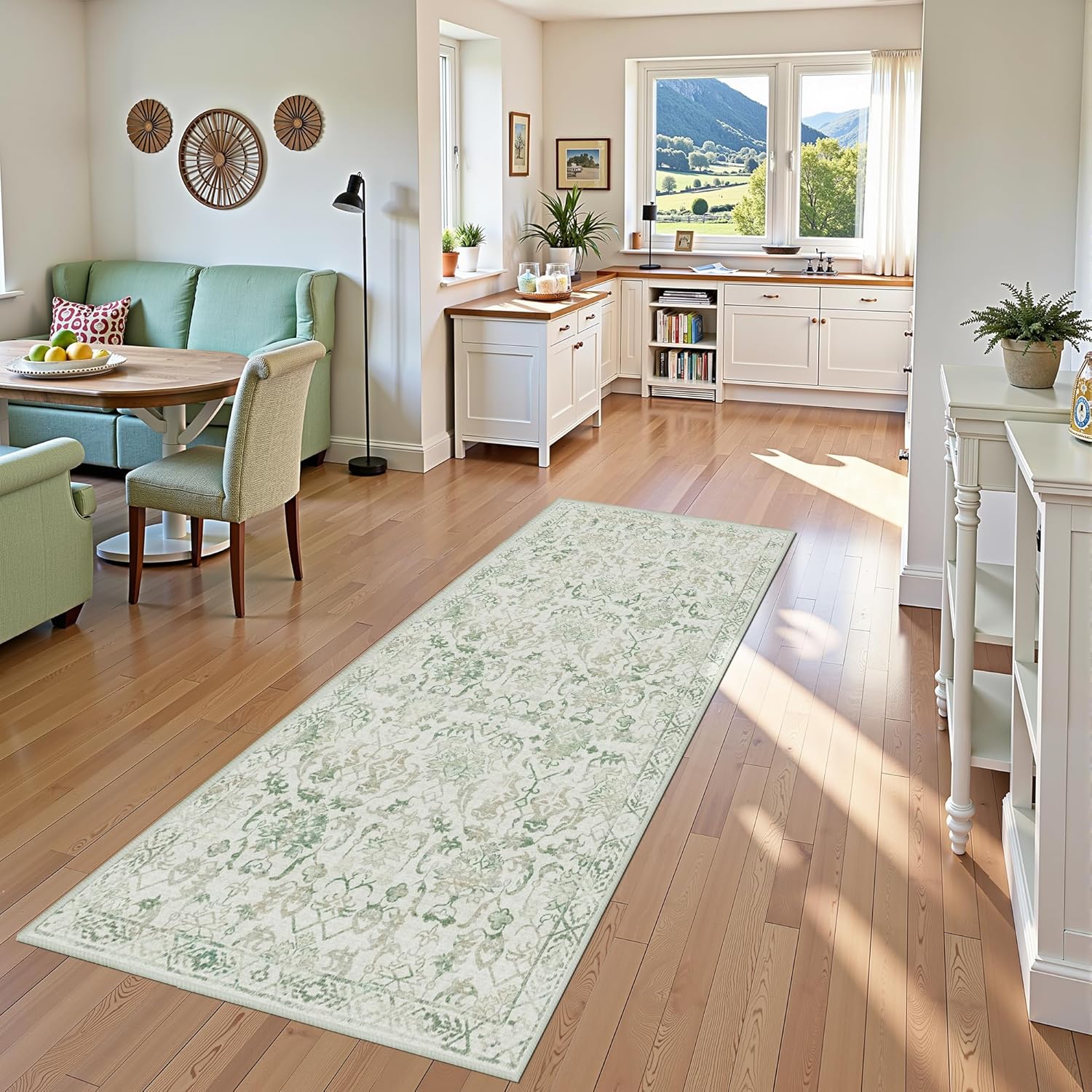 • Deerly Vintage 3x7 Runner Rug: These Hallway runner rug feature trendy faded style and unique neutral distressed floral pattern, vintage tones combines the green and ivory color, creating a comfortable and warm family environment. 3x7 rug runner is suitable for indoor entrance, bedroom, kitchen, bathroom, etc.