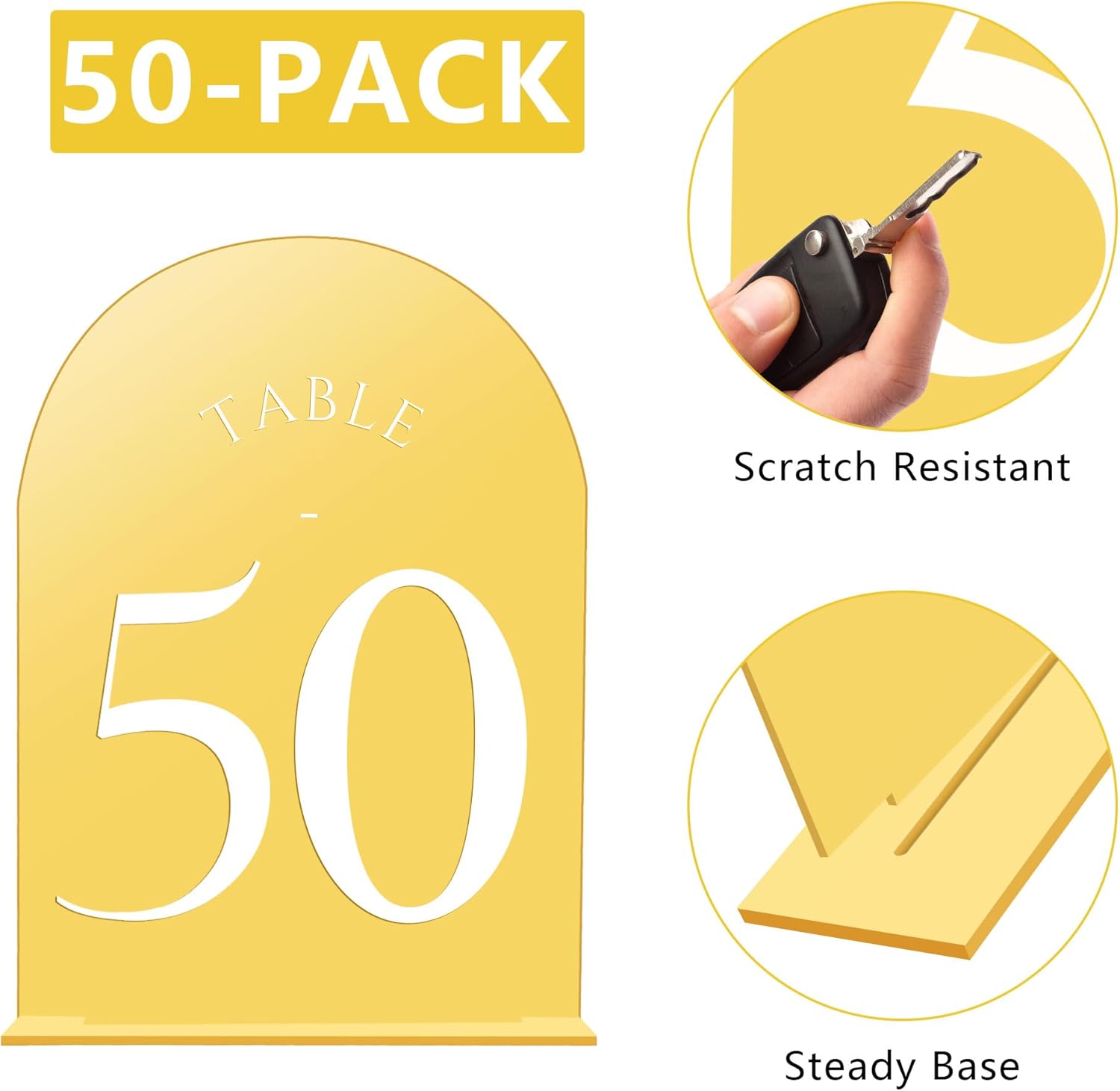JOYIT Arch Wedding Table Numbers 1-50 with Stands – 5" X 7" Acrylic Mirrored Gold Table Number Holders, Perfect for Wedding Receptions, Parties, Anniversaries, and Events