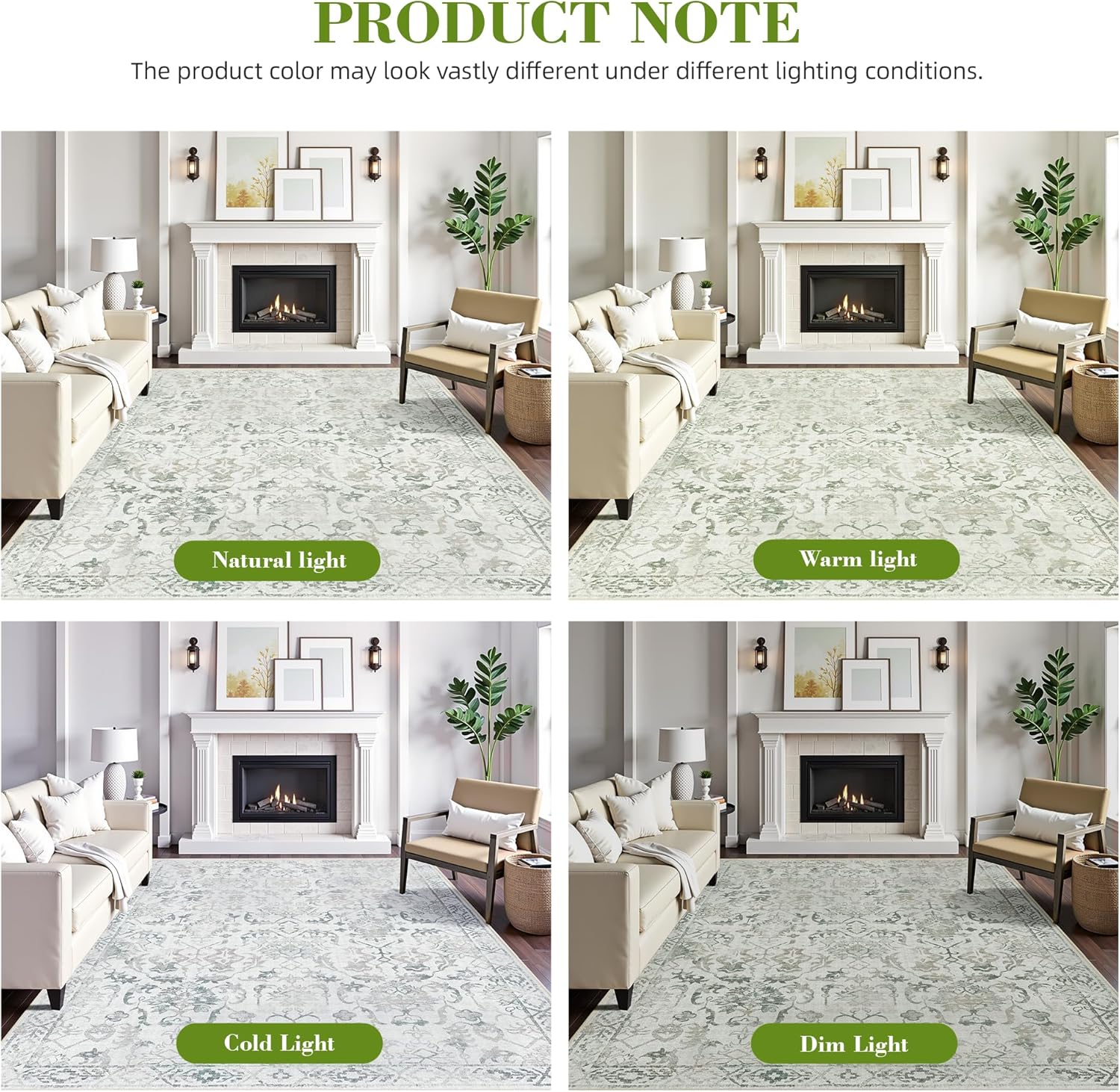 Beige Green Area Rugs 6x9 for Living Room, Washable Vintage Rugs for Bedroom, Distressed Throw Rug, Non Slip Rug Carpet for Bedroom Dining