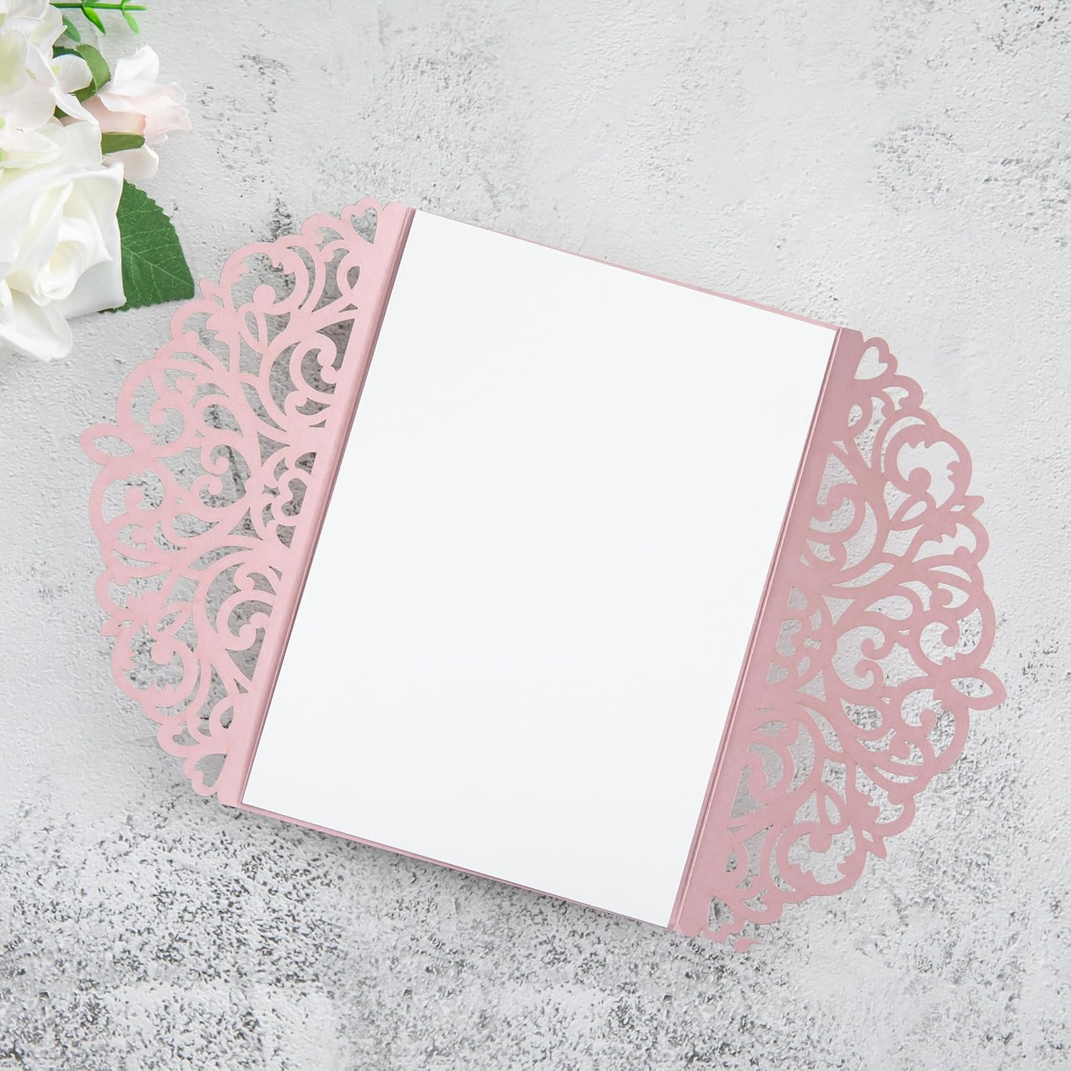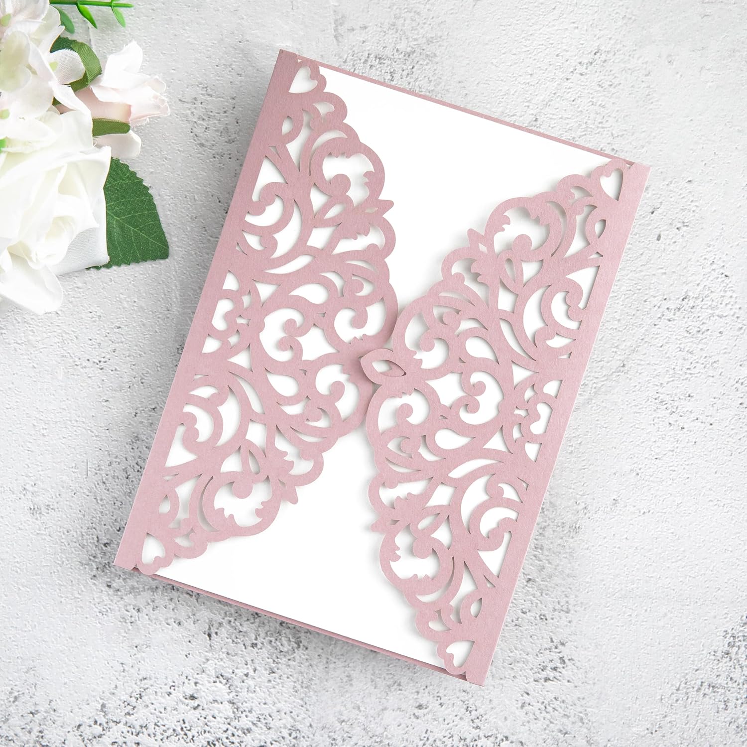 20Pcs Dusty Rose Laser Cut Invitation Cards With Blank Inner Sheets for Wedding Cards Bridal Shower Engagement Quinceanera Invitation (No Envelopes)