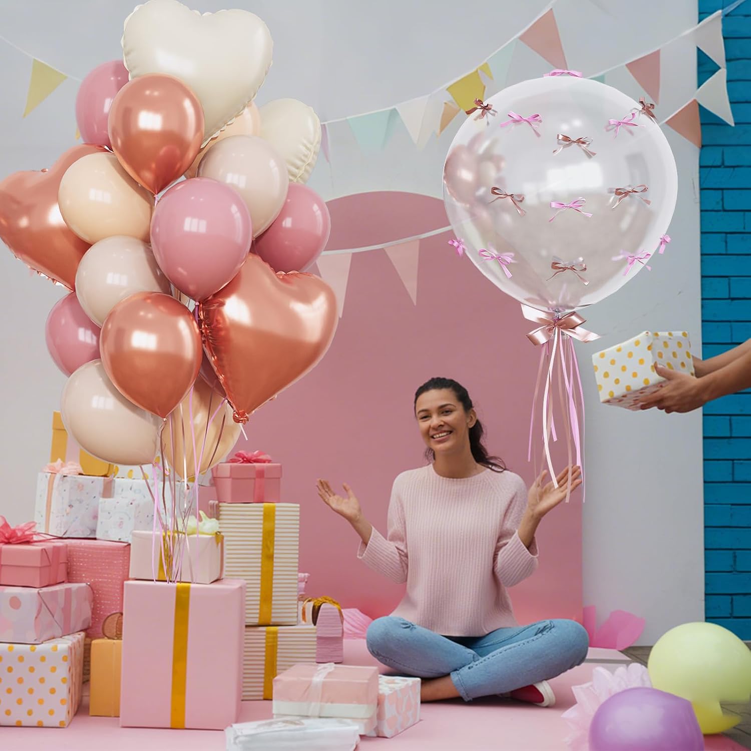 Retro Blush Pink Balloons Dusty Rose Gold Cream Heart Balloon as Bachelorette Birthday Decorations for Her, Dusty Pink Nude Balloons 18 inch Clear Heart Balloon as Baby Bridal Shower Decorations Decor