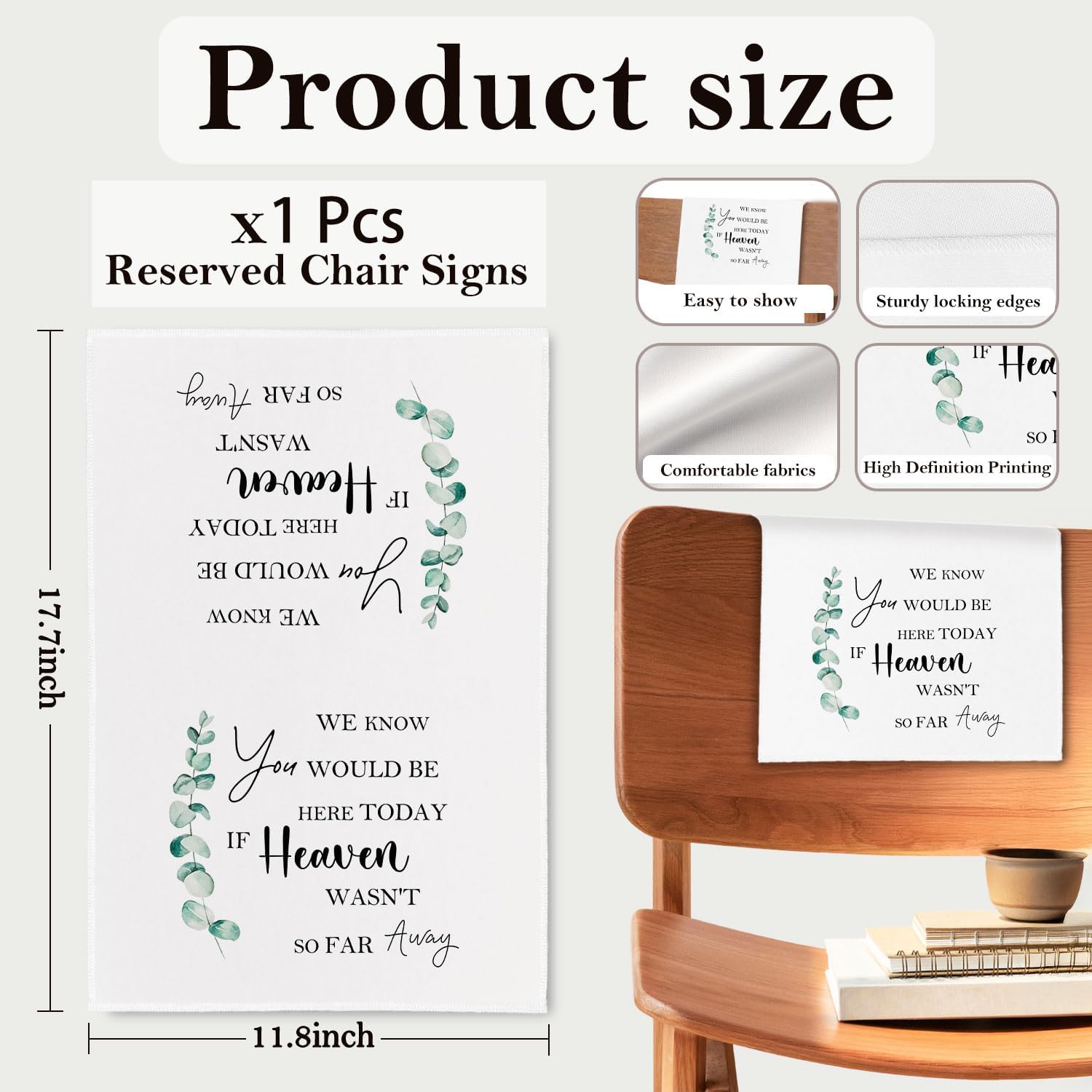 • Universal Fit: Each reserved seat sign measures approx. 30 x 45 cm / 11.81 x 17.72 inches, making it suitable for most standard chairs and benches. The size ensures that the message is easily visible to guests, while remaining easy to store and carry.