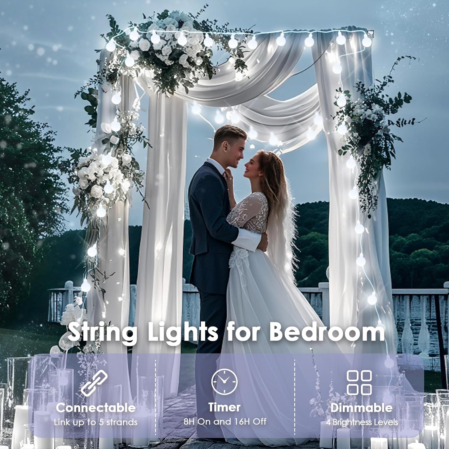 • Connectable Design: Our indoor fairy lights with remote could be extended up to a maximum of 5 sets, which means you can expand the decorative range as needed. LED string lights indoor can be used for various purposes, such as decorating classroom, dorm, girl's bedroom, home, wedding, party, patio, kids' room, balcony, window, living room, garden, wedding and Christmas.