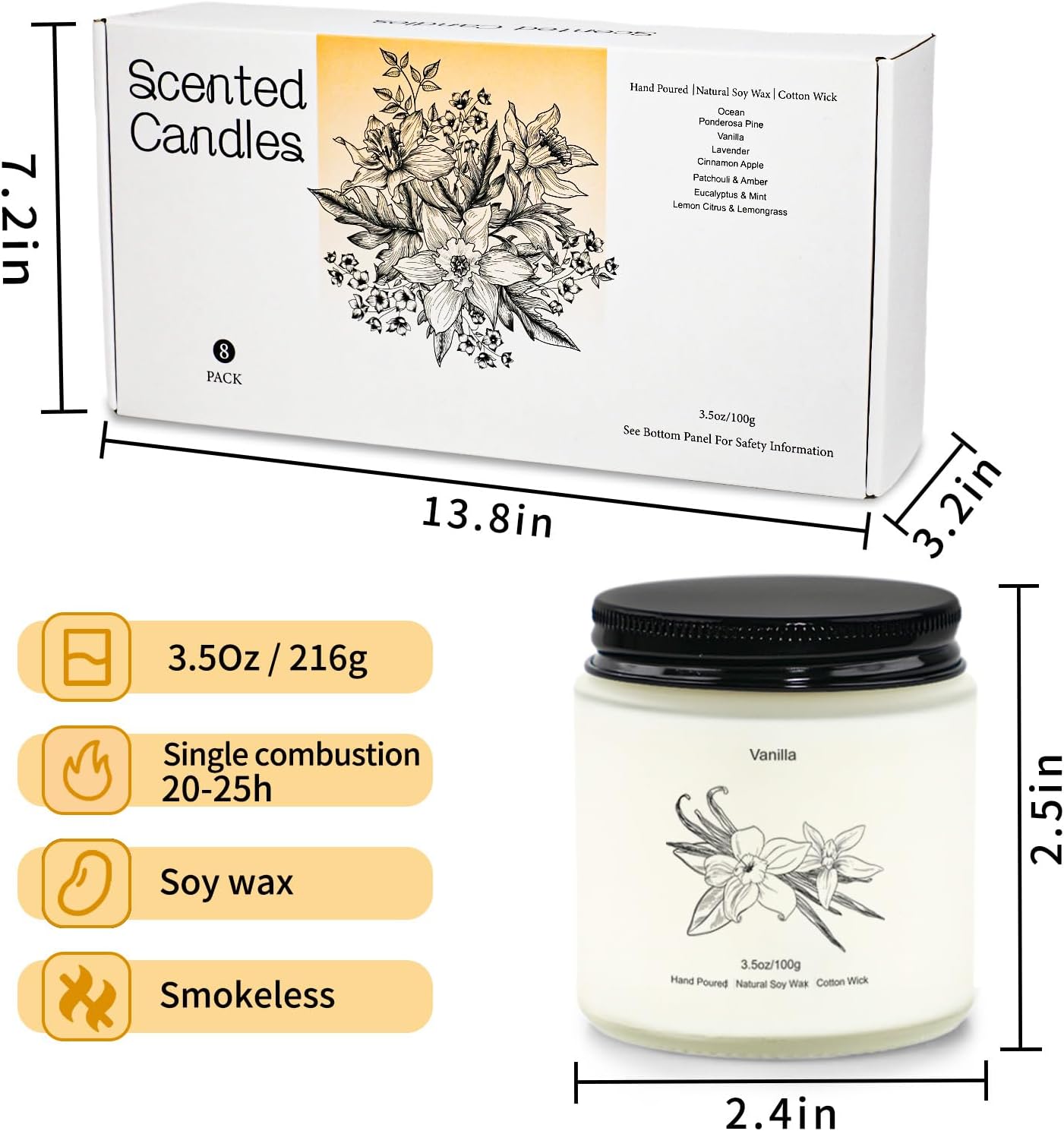 8 Pack Candles for Home Scented, Gifts for Women,Aromatherapy Candle Set for Women, Natural Soy Wax Jar Candles Set, Candle Gifts for Mother's Day, Birthday, Valentine's Day