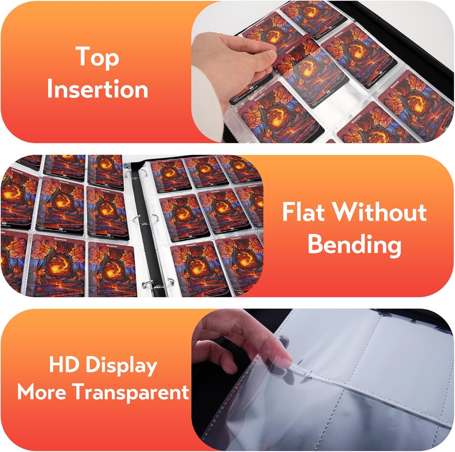 • Large Capacity:This Trading Card Binder with 50 Double Sided Pages,9 pocket per page,holds up to 900 cards.Provides plenty of space to keep all your cards organized,not disorganized