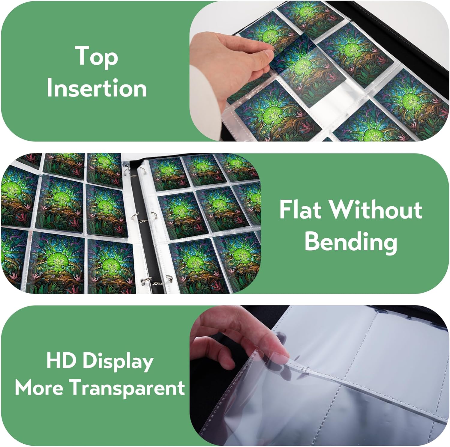 • Large Capacity:This Trading Card Binder with 50 Double Sided Pages,9 pocket per page,holds up to 900 cards.Provides plenty of space to keep all your cards organized,not disorganized