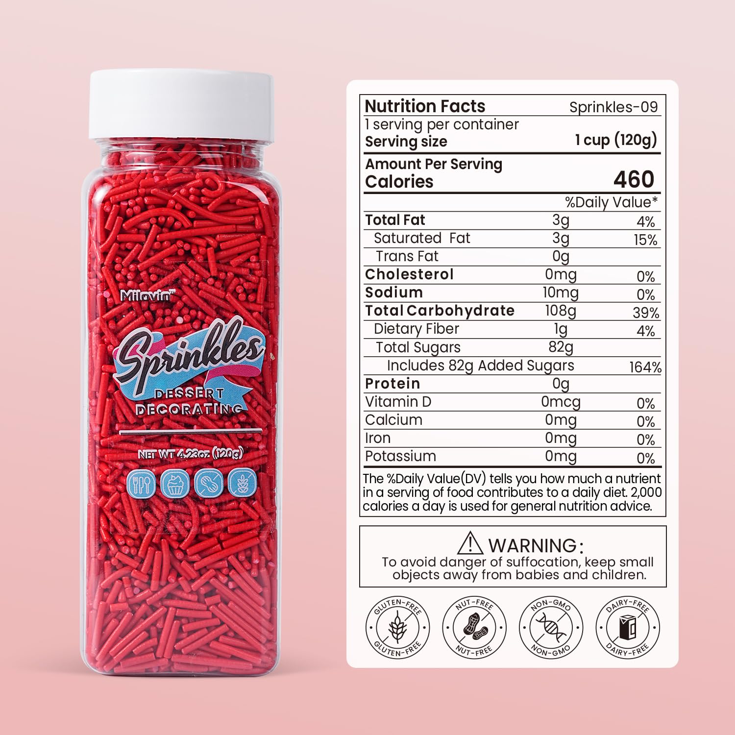 • High Quality and Safe: Made with food-grade ingredients. Edible, Gluten-free, Nut-free, Dairy-free, Non-GMO. Our red jimmies sprinkles meet American food standards and guard your and your family's health