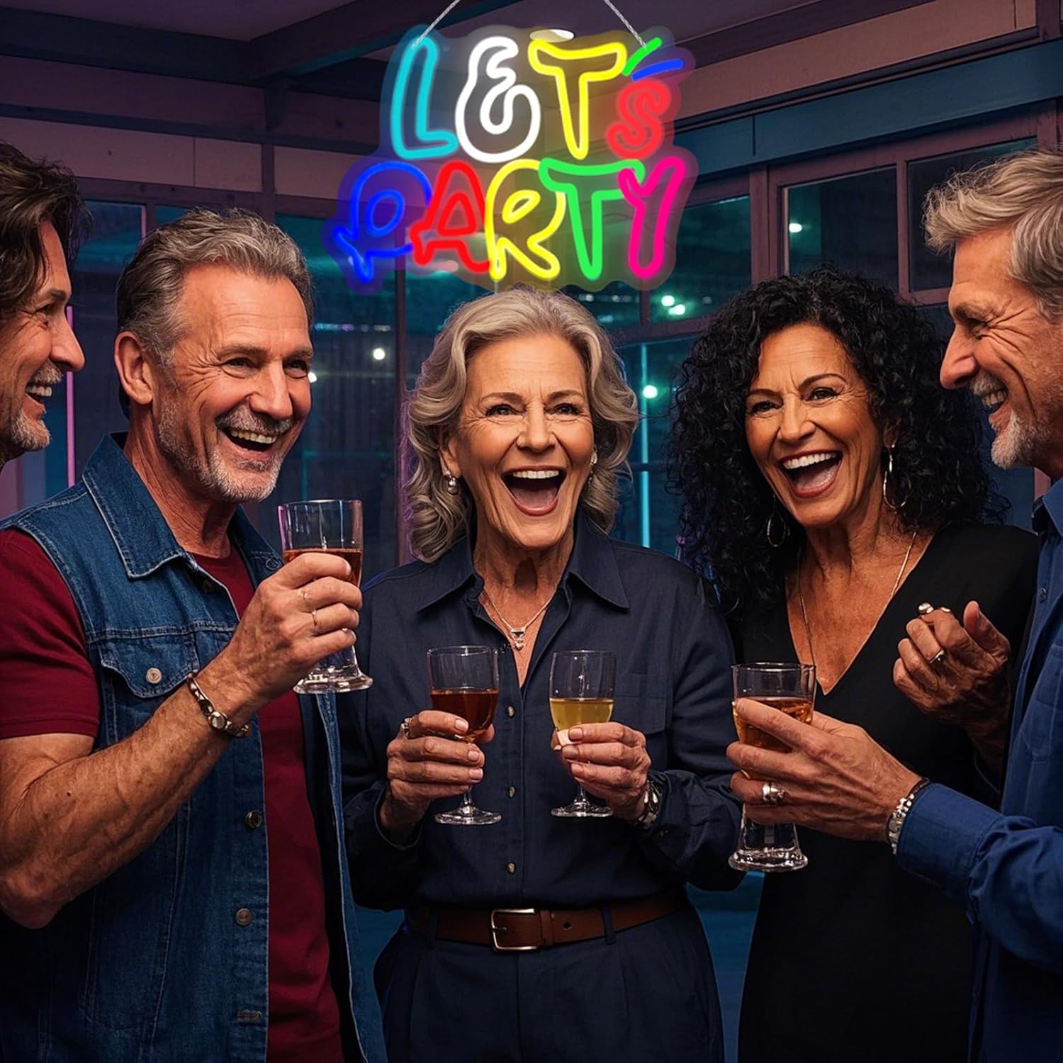 Let's Party Neon Sign for Wall Decor with Dimmable and USB Power,Multicolor LED Light up Sign,Party signs Perfect for Birthday,Bachelorette Parties,Game Room,Bar Lighting,gifts,size:14.17*10.32In