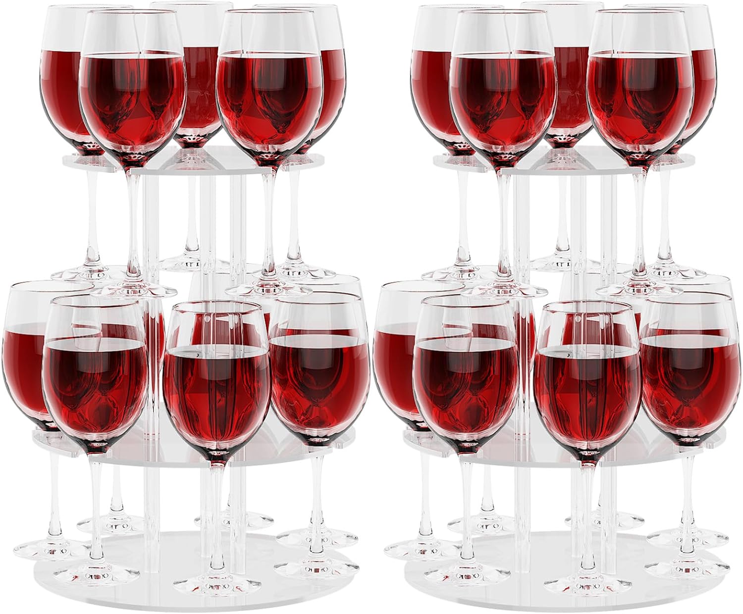 Champagne Tower, Circle Acrylic Champagne Display Rack Stand with 12 Slots, 2 Tiers Floating Sight Champagne Flute Holder for Party, Wedding, School, Celebration, 11.8x11.8x15.4 inch, 2 Pcs