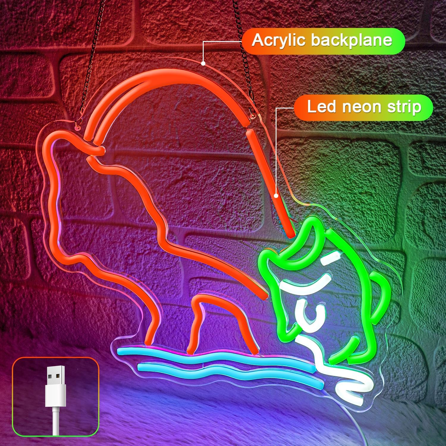 • LED Glow – Safe & Energy-Efficient This fishing neon sign uses flexible LED tubing for a soft, vibrant glow without any buzzing or overheating. It’s safe to touch and more eco-friendly than traditional neon glass.