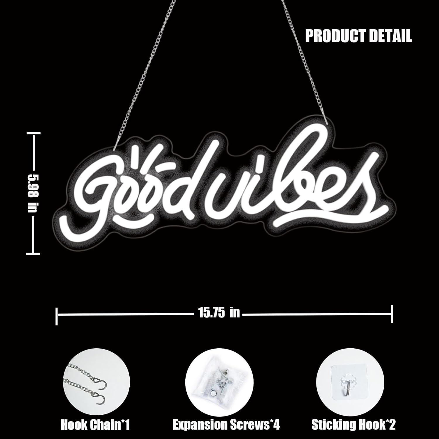 • Excellent Gifts:Good Vibes neon decoration Perfect Gift for Good Vibes Lovers‌ ‌Surprise friends, family, or coworkers with this ready-to-gift neon sign! Good Vibes neon light is suitable for a friend gathering. Birthday Party, Christmas, Housewarming.