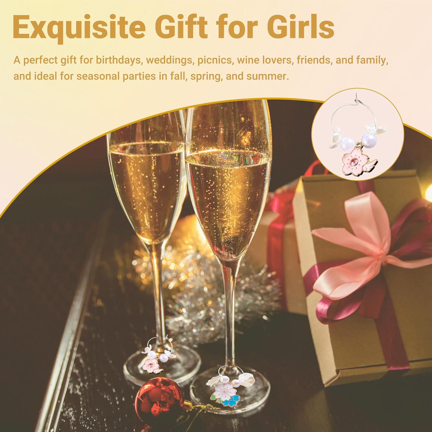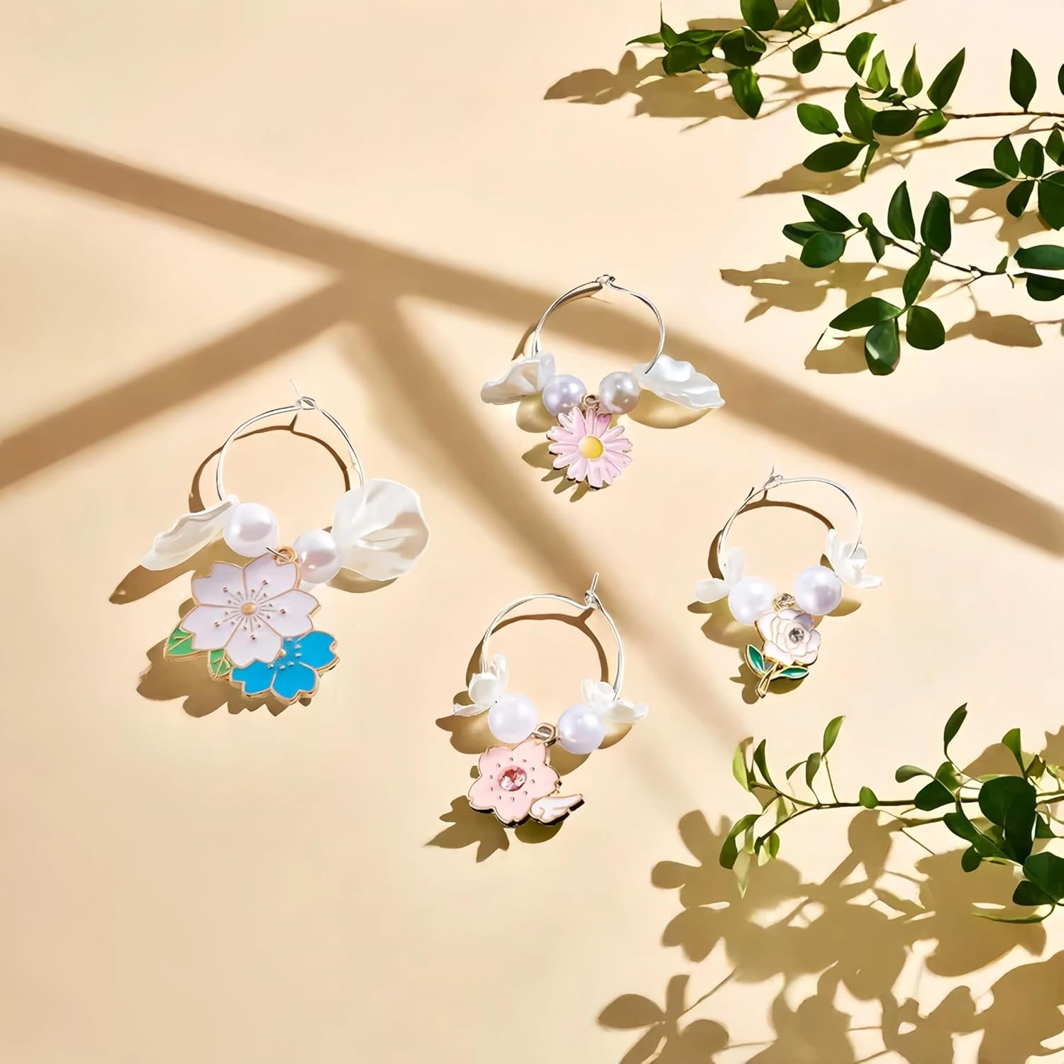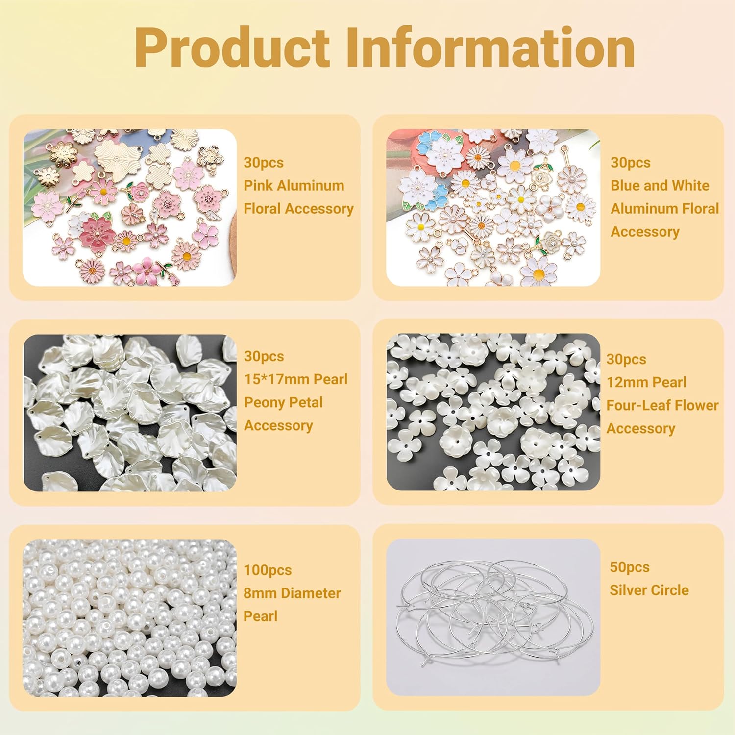 • Floral Wine Charms DIY Kit: Includes ​60 zinc alloy flower pendants, ​60 pearl petals, ​100 pearl beads (approx. 0.3-inch), and ​50 silver-tone hoops to craft custom names or decorative phrases for personalized drinkware accessories