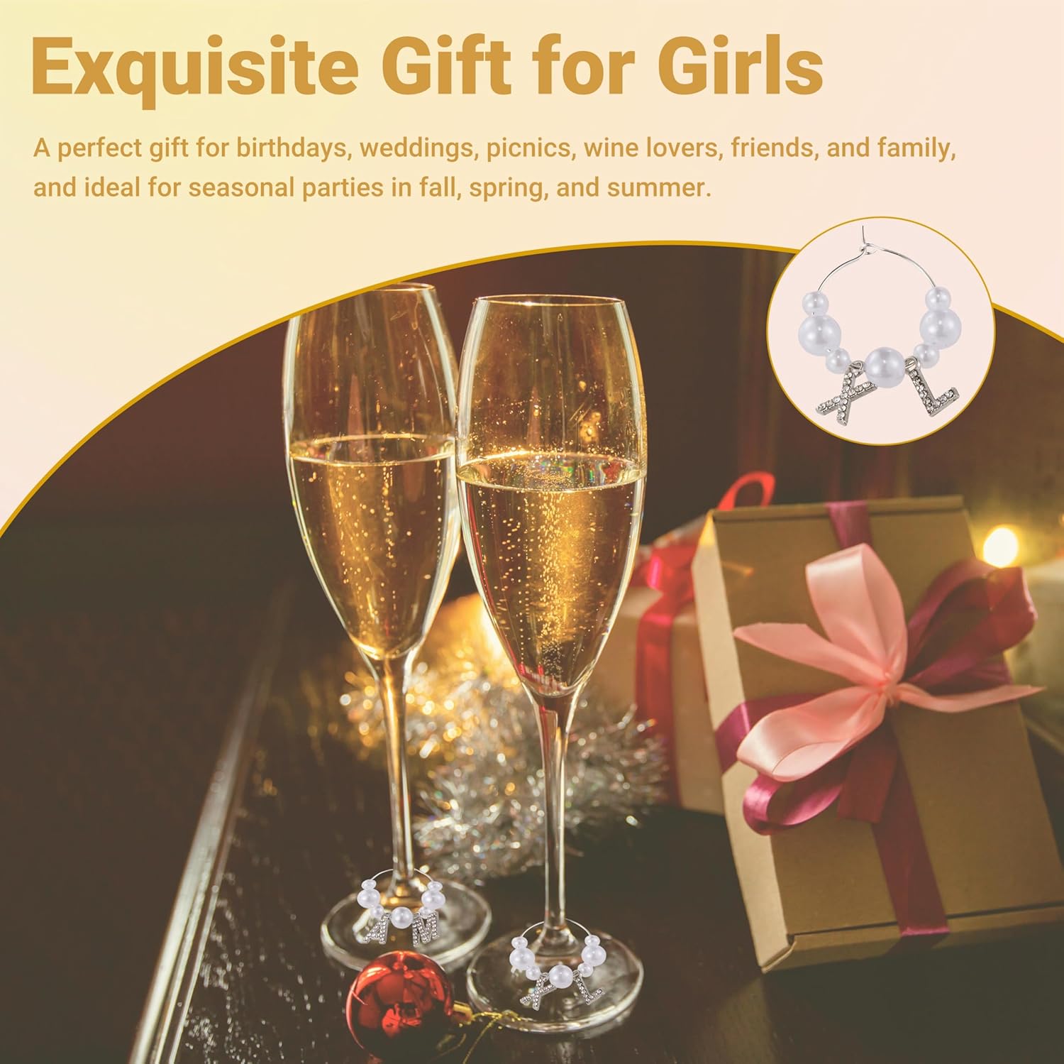 50 Sets Wine Glass Charms, Wine Charms for Stem Glasses, DIY Reusable Drink Markers for Weddings & Bachelorette with Alphabet Beads